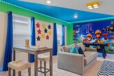 Experience ultimate comfort and modern design in this beautifully decorated 7-bedroom home, perfect for up to 15 guests. Enjoy a spacious living room for gatherings, a fun Mario Bros family room, and themed bedrooms like Mickey, Minions, Princess, and Toy Story. With 3 elegant suites, everyone can relax in privacy and style. Located in Windsor Cay Resort, this home is the ideal setting for a memorable and fun-filled vacation! Welcome to your ultimate vacation retreat—a modern 7-bedroom home in the brand-new Windsor Cay Resort, thoughtfully designed with comfort, fun, and entertainment in mind. Perfect for creating unforgettable memories, this home offers everything needed for an exciting and relaxing stay. On the first floor, enjoy a spacious open-plan living room seamlessly connected to a contemporary kitchen and dining area, ideal for family gatherings. Step outside to the large patio featuring a private heatable pool, perfect for unwinding after a fun-filled day, with a convenient half bathroom nearby. This level also includes the chic master king suite, offering a stylish and serene escape. Upstairs, the excitement continues with a cozy Mario Bros-themed family room, six more beautifully decorated bedrooms, and four bathrooms. The accommodations include a sophisticated king bed suite with an ensuite bathroom, a beautifully designed queen suite for added comfort, an enchanting Princess-themed bedroom with two twin beds sharing a bathroom with a fun Toy Story-themed room featuring a bunk bed with two single beds, and a Mickey-themed room with a queen bed sharing a bathroom with the playful Minions-themed room that includes a double bed and a single bed. For your convenience, the home is equipped with a laundry room featuring a washer and dryer, free Wi-Fi, complimentary parking, and a welcome kit to ensure a seamless start to your stay. With its blend of modern design, thoughtful comforts, and vibrant themed spaces, this home is the perfect retreat for families and groups. Guests are responsible for replenishing bathroom and kitchen supplies. Pool heating and use of the barbecue grill are available for an additional fee. Welcome to Windsor Cay Resort Club, the perfect destination for family fun and relaxation. Ideally located just minutes from Orlando’s famous theme parks, shopping, and dining, this vibrant clubhouse offers everything you need for an unforgettable stay. Enjoy the resort-style pool, lazy river, and interactive kids splash pad. Sip a drink at the tiki bar or unwind in the jacuzzi spa. Stay active with the fitness center, minigolf, and cornhole. Whether you’re here for adventure or leisure, Windsor Cay Resort Club has something for everyone—all in a prime location close to Central Florida’s top attractions. Quiet hours are between 22:00 and 8:00.