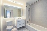 Feel at home in this centrally located apartment in the theater district of Manhattan, offering stunning views in an architecturally gorgeous building. This is a very clean and modern apartment with beautiful views. It has a dishwasher, in-unit washer/dryer, and quality dishes, utensils, and cookware. This unit is fully stocked for those who like to cook at home. This apartment is centrally located in the theater district of Manhattan. [SI]