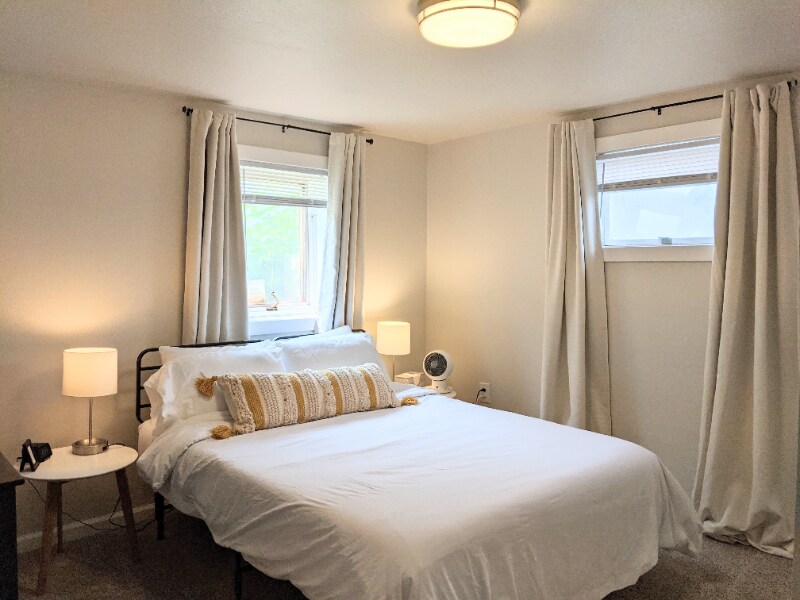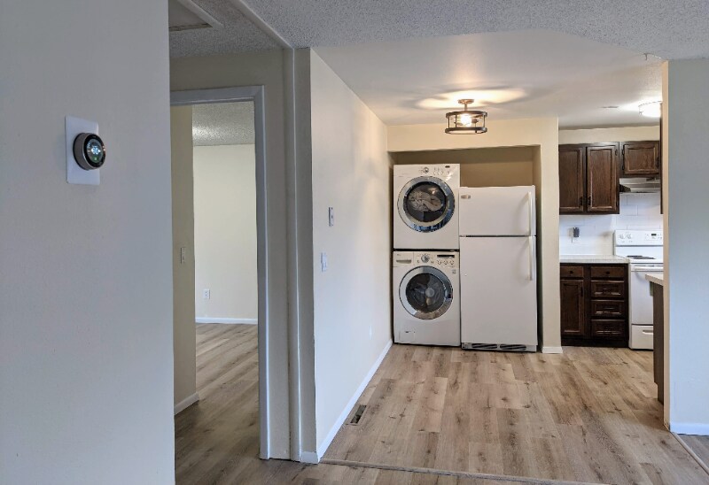 Property Id: 1569929 Tours are available. Contact us to schedule. 6 or 12 month lease with the option to renew or go month to month afterwards. Spacious 4 bedroom, 2 full bath, 2 story home. One half of a duplex. Two large living rooms. Smart thermostat. Fiber internet hookups (but internet not included in rent). Keyless entry. All appliances included including the stacked washer and dryer and extra refrigerator. No other furnishings. Pictures of rooms with furnishings are just for staging. Luxury vinyl plank flooring throughout, two lower bedrooms are carpeted. Off-street paved parking next to the house accessed by the alley. Owner pays water and trash. Tenant is responsible for internet, gas and electric. Dogs allowed, no cats, but must be pre-approved before signing. $150 non-refundable pet fee. Pet rent: $50/pet/month. Proof of renters insurance required.