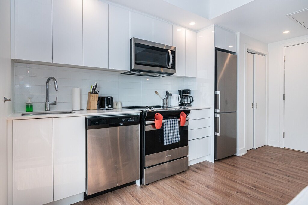 This remarkable addition to Montreal's skyline offers an unparalleled location for those eager to immerse themselves in the city's vibrant energy. Situated close to key landmarks such as the Berri-UQAM Metro Station, UQAM campus, Emilie-Gamelin Park, and bustling St-Catherine Street, you will enjoy seamless access to transportation, education, green spaces, and entertainment. This lovely apartment is located near the Berri–UQAM station, just a 5-minute walk away. It features one bedroom with a queen bed and one bathroom. The apartment offers convenient amenities such as an elevator, storage, gym, indoor parking, and a security system. It is pet-friendly, allowing you to feel at home with your furry friends. Indoor parking is available with in/out privileges. If you need parking, please let us know in advance to check availability. This service has a separate fee depending on your length of stay. We offer a variety of cleaning services, including bi-weekly or monthly options. If you require this service, please contact us for more information. This service has an extra charge. No parties of any kind or loud noises that can alter the harmony of residents are allowed. No smoking of any kind, including cannabis and cigarettes, is permitted inside the apartment, on the balcony, or within the building. Please care about your home away from home.