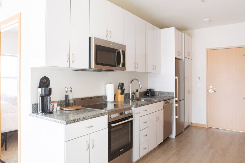 The advertised rate of $2,805/month is the lowest available price, based on a 1 month(s) stay with a move-in date of April 17, 2026. Rates vary depending on the duration of stay, season, and other parameters. For exact pricing and additional pricing components, please visit our website and enter your desired move-in and move-out dates. The rate is applicable when billed upfront; it can be higher if billed in multiple payments. Feel at home in this modern 1-bedroom apartment situated in the vibrant East Side, one of the most walkable and friendly neighborhoods in the city. The space is cozy, contemporary, and outfitted with every convenience in mind, including a smart TV, self check-in, high-speed Wi-Fi, a laptop-friendly workspace/dining table, a private balcony, and in-unit laundry. A 24-hour fitness center is available for your use. Reserved parking is not included. Free daytime street parking is available throughout the neighborhood on Jackson St and on Pleasant St. Overnight street parking is restricted to specific streets, for example, allowed on Jackson St, Jefferson St, Pleasant St, and the west side of Water St, but not allowed on the east side of Water St. Overnight street parking requires a permit which you can request for free up to 3 nights (or 4 nights when including Saturday which isn't enforced) by calling the city at on the day you'd like to start parking and requesting a Temporary Night Parking Permit. If street parking for 4+ nights is needed, you can purchase a Night Parking Permit for $1-20 depending on duration. Just steps away are loads of quality restaurants, cafes, breweries, a grocery store, and the scenic Riverwalk. With the Fiserv Forum and downtown attractions easily accessible, this is an ideal location whether you're in town for business or pleasure. All within two blocks are cafes, breweries, a grocery store, a brunch restaurant, a beercade, the Riverwalk, and several restaurants and bars. No parties, gatherings, or commercial uses are allowed. No smoking of any kind is allowed anywhere on the premises, including outdoor spaces, and a $150 fine will be assessed in addition to any fees for remediation. Quiet time is after 10pm. Guests must cover the cost to replace unreturned access devices such as keys, key cards, fobs, or parking passes. Guests take full responsibility for loss, injury, or damages that occur on the premises and its facilities. Bookings by local guests are prohibited at this property. Check-in is available anytime after 1pm. [SI]