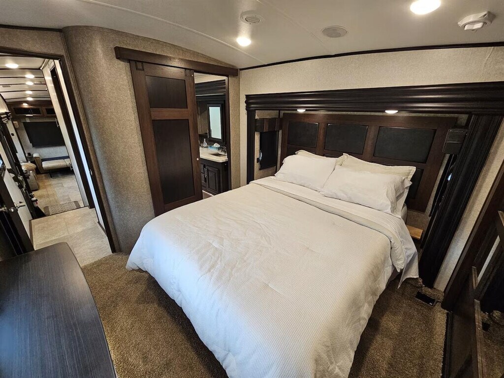 Stay in this charming 2018 Jayco - North Point Camper, a spacious 300 sq ft retreat nestled on a large lot. Enjoy the tranquility of a quiet neighborhood with a small creek running through, providing a relaxing ambiance. The camper features a queen-sized bed and a full-sized fold-out couch, offering comfortable accommodation for up to four guests. This camper offers massage and heated theater-style seating, a good-sized closet in the bedroom, and a solid Wi-Fi connection for the area. The fully stocked and equipped kitchen includes stainless steel appliances such as a microwave, fridge, and stove, along with glasses, mugs, dishes, and cutlery. Enjoy complimentary Wi-Fi, live TV, and coffee during your stay. The property offers plenty of parking space and a large yard for hanging out or playing games and activities like cornhole and horseshoes. While the outdoor areas are shared, guests have access to the entire property during their stay. Located near multiple great fishing spots, this camper provides easy access to a variety of outdoor activities. The quiet neighborhood is set in a beautiful little valley, offering a peaceful retreat while still being close to local attractions. This camper is not a full house, which may not be the best fit for some. Easy self-check-in is available via lockbox. The property occasionally hosts another RV space, so the grassy areas and gazebo may be shared at times.
