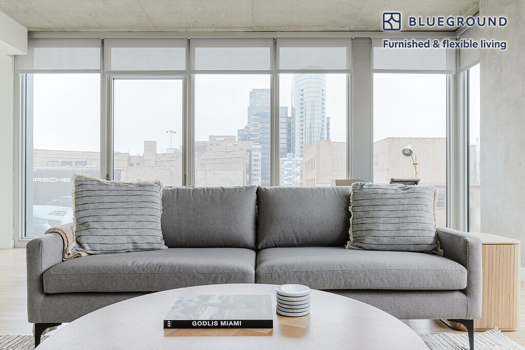 Show up and start living from day one in Chicago with this comfortable two bedroom Blueground apartment. You’ll love coming home to this thoughtfully furnished, beautifully designed, and fully equipped West Loop Gate home with stunning views over the city. (ID #CHI1138) The advertised rate of $2,580/month is the lowest available price, based on a 1 month(s) and 24 day(s) stay with a move-in date of January 1, 2026. If you’re looking for a 1-year stay, the rate is $3,750/month. Rates vary depending on the duration of stay, season, and other parameters. For exact pricing and additional pricing components, please visit our website and enter your desired move-in and move-out dates. The rate is applicable when billed upfront; it can be higher if billed in multiple payments. Brokers are welcome to reach out. Were you looking for an unfurnished lease? Try Blueground instead and upgrade from unfurnished to furnished living: - Furnished at rates comparable to unfurnished - No setup or furniture costs - save thousands - Move-in ready - save time, just bring your suitcase Designed with you in mind Thoughtfully designed with bespoke finishes, modern furnishings, and a fully equipped kitchen, you’ll enjoy that “I’m home” feeling with this Blueground apartment. Whether you’re lounging in your stylish living room streaming the latest and greatest entertainment on the smart TV or premium wireless speaker, or getting some well-earned rest on the superior quality mattress with luxury linens, you’ll fall in love with everything this West Loop Gate apartment has to offer. This apartment also offers in-apartment laundry. Sleeping arrangements King Bed, 70.8in/180cm Queen Bed, 63in/160cm Amenities Building amenities unique to this two bedroom apartment include an on-site: - BBQ Area - Doorman - Dryer - Elevator - Swimming pool - Washing machine - Lounge - Parking - Pets allowed Arrival and ongoing support The entire apartment is yours to enjoy! Throughout your stay, you’ll have access to our Client Experience team through the Blueground App. You can schedule additional cleanings, submit maintenance requests, and view our neighborhood recommendations with just a few taps. We’ll share all details upon confirmation of your stay. Other things to note Building amenities may have an extra cost. This Blueground apartment has flexible lease options, allowing you to book it for one month, a year, or more. Pets are welcome, though weight limits and breed restrictions apply and may incur fees. Parking is offered based on availability and is subject to a fee. We take great pride in ensuring every photo displayed is shot in our own units with our actual furnishings. That said, we regularly refresh our decor and furniture arrangement, which may differ from what’s pictured. Also note - This apartment's central location means it can be noisy at times - This is a guarded building equipped with a doorman/concierge at all times