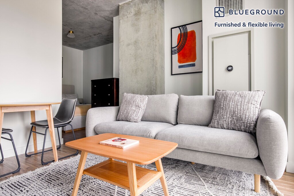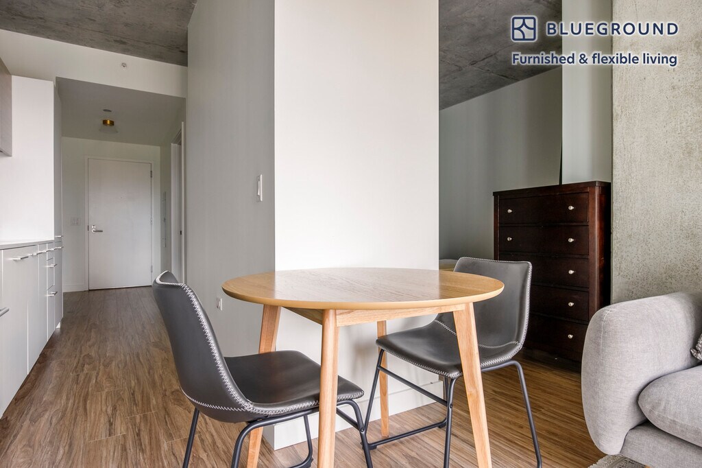 Show up and start living from day one in Chicago with this lovely one bedroom Blueground apartment. You’ll love coming home to this thoughtfully furnished, beautifully designed, and fully equipped West Loop Gate home. (ID #CHI1275) The advertised rate of $1,670/month is the lowest available price, based on a 1 month(s) and 17 day(s) stay with a move-in date of December 21, 2025. If you’re looking for a 1-year stay, the rate is $2,630/month. Rates vary depending on the duration of stay, season, and other parameters. For exact pricing and additional pricing components, please visit our website and enter your desired move-in and move-out dates. The rate is applicable when billed upfront; it can be higher if billed in multiple payments. Brokers are welcome to reach out. Were you looking for an unfurnished lease? Try Blueground instead and upgrade from unfurnished to furnished living: - Furnished at rates comparable to unfurnished - No setup or furniture costs - save thousands - Move-in ready - save time, just bring your suitcase Designed with you in mind Gorgeous furniture, fully equipped kitchen, smart TV, and a premium wireless speaker are just a few of the amenities you’ll find inside this one bedroom apartment. Ideally located in Chicago, you’ll find a lot to love outside as well. When you’re ready to relax, you’ll be happy to discover every Blueground bedroom comes with superior quality mattresses, luxury linens, and cozy towels. We handle everything so you can simply show up and start living. This apartment also offers in-apartment laundry. Sleeping arrangements Queen Bed, 63in/160cm Amenities Building amenities unique to this one bedroom apartment include an on-site: - BBQ Area - Doorman - Dryer - Elevator - Swimming pool - Washing machine - Lounge - Parking - Pets allowed Arrival and ongoing support The entire apartment is yours to enjoy! Throughout your stay, you’ll have access to our Client Experience team through the Blueground App. You can schedule additional cleanings, submit maintenance requests, and view our neighborhood recommendations with just a few taps. We’ll share all details upon confirmation of your stay. Other things to note Building amenities may have an extra cost. This Blueground apartment has flexible lease options, allowing you to book it for one month, a year, or more. Pets are welcome, though weight limits and breed restrictions apply and may incur fees. Parking is offered based on availability and is subject to a fee. We take great pride in ensuring every photo displayed is shot in our own units with our actual furnishings. That said, we regularly refresh our decor and furniture arrangement, which may differ from what’s pictured. Also note - This apartment is located on a busy street - Noise from the nearby nightlife can sometimes be heard late at night - This is a guarded building equipped with a doorman/concierge at all times