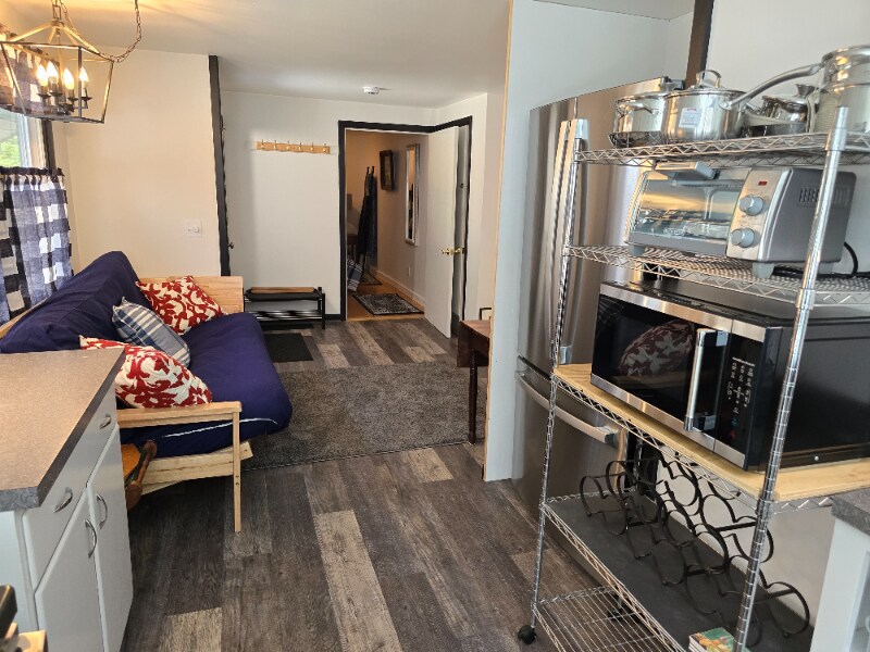 Property Id: 2203648 One bedroom one bathroom apartment completely remodeled, open concept located on a dead end road in Wardsboro Vermont. Furnished/Unfurnished/ Partially furnished upon tenants request. Close to Mount Snow, Stratton & Bromley Mountains. Use of one bay in garage. All kitchen appliances are new stainless steel in addition landlord provides blender, coffeemaker, microwave, glasses, dishes and flatware. Washer and Dryer are brand new. High end vinyl flooring and hardwood. Pets not preferred but will be considered. Heat, hot water, electricity, WIFI and garbage removal are all included in rent. Driveway snow removal provided by landlord however it is the tenants is responsibility to keep entrances clear.