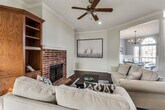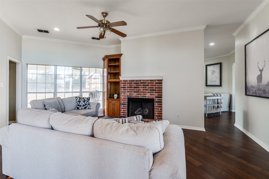 Beautiful renovation to this ACRE property. Great Location with easy access to IH35. Updated manufactured wood flooring and paint throughout and built-in bookshelves and workstation in the secondary bedroom. Spacious Open Floor Plan with Two Living Rooms, Primary Living Room with fireplace off the main entry. Large Second Living Room has access to the back covered patio. Kitchen offers granite counters. Master Bedroom Downstairs with His & Her Vanities, a Garden Tub & Separate Shower. Two Bedrooms Upstairs with a Jack & Jill Bath. Covered Back Patio. Large backyard. Seller is open to selling property as well. Property can remain furnished at an additional price.