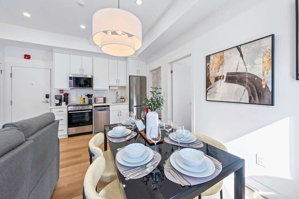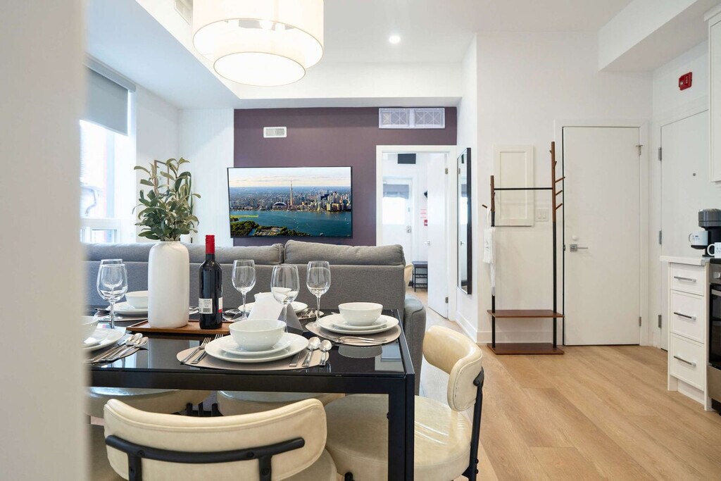 The advertised rate of C$9,780/month is the lowest available price, based on a 30 day(s) stay with a move-in date of August 7, 2026. Rates vary depending on the duration of stay, season, and other parameters. For exact pricing and additional pricing components, please visit our website and enter your desired move-in and move-out dates. The rate is applicable when billed upfront; it can be higher if billed in multiple payments. Feel at home in this brand-new suite in Baldwin Village, designed for families, groups, and business travel. This downtown suite features spacious layouts and private bedrooms. Experience a space that’s built for real-life stays, where home comforts meet design-forward living. Enjoy a fully equipped kitchen with full-size appliances, Canadian-made Endy mattresses in every bedroom, and smart TVs with Netflix in each room. This suite includes multiple bedrooms and open-concept living and dining areas ideal for gathering, working, or relaxing after a day in the city. Inside, you’ll find 2 full bathrooms with hotel-quality towels, toiletries, and a hairdryer, in-suite washer and dryer, cooking essentials, a Nespresso coffee machine, air conditioning and heating with remote control access, fresh linens, bath towels, essential supplies, and accessibility-friendly features such as ADA-width doors, automatic paddles, a walk-in shower with handrails (ensuite only), and bedrooms with support rails. Optional add-ons include a Pack ’N Play or highchair for a one-time fee of $40 each. Stay steps from Toronto’s top attractions, universities, and cultural landmarks, including OCAD University, the Art Gallery of Ontario (AGO), Queen’s Park, and Queen’s Park Subway Station. You're perfectly located for exploring Toronto’s most vibrant neighborhoods, dining hotspots, and cultural destinations. McCaul Street is surrounded by top attractions, dining, shopping, and cultural landmarks. St. Patrick Station, Osgoode Station, and Queen’s Park Station are nearby, with quick connections to all major TTC subway lines and downtown routes. Close to Dundas Street West and University Avenue, this apartment offers quick routes to the Gardiner Expressway, DVP, and other key downtown corridors. Quiet hours are between 10:00 PM and 7:00 AM. Parties, events, and smoking/vaping are prohibited in or around the property, and pets are not permitted at this property, except for service animals. For safety reasons, firearms, weapons, and ammunition are strictly not allowed on the premises. Breaking any of these house rules may subject you and your group to additional charges or a request to vacate the property immediately without refund. Complimentary high-speed Wi-Fi is available. [SI]