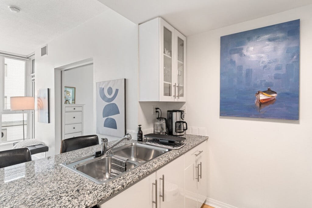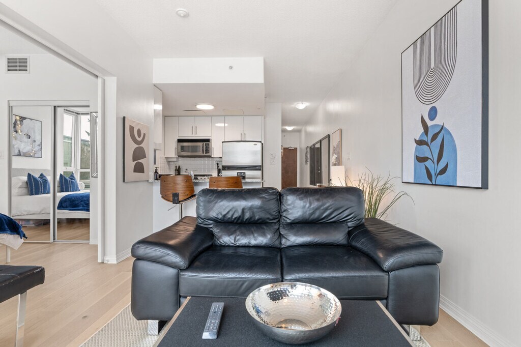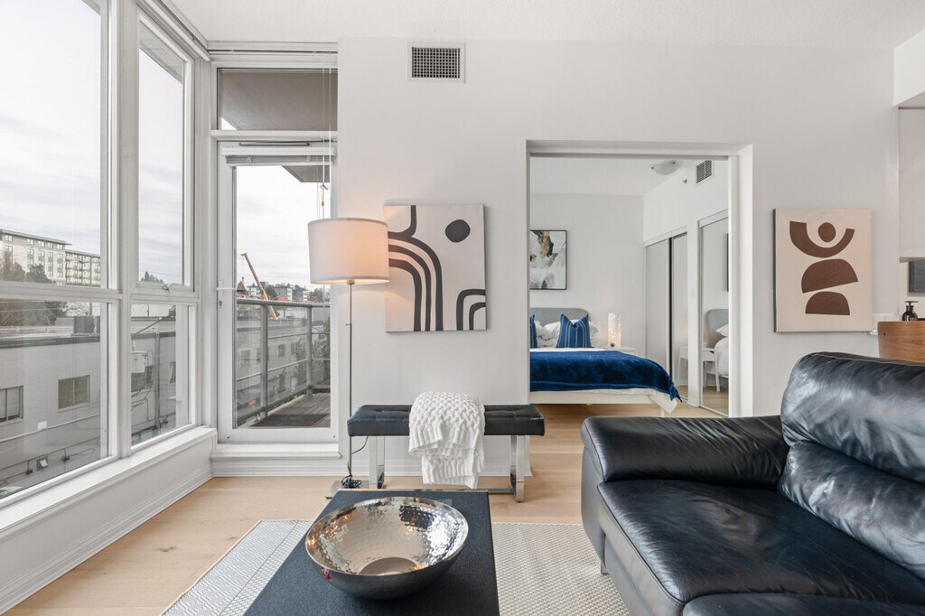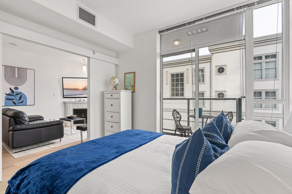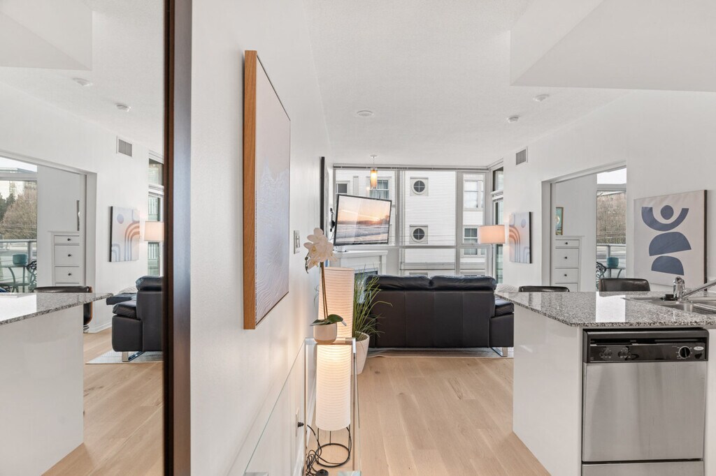 The advertised rate of C$3,595/month is the lowest available price, based on a 1 month(s) stay with a move-in date of April 1, 2026. Rates vary depending on the duration of stay, season, and other parameters. For exact pricing and additional pricing components, please visit our website and enter your desired move-in and move-out dates. The rate is applicable when billed upfront; it can be higher if billed in multiple payments. Feel at home in this bright, modern 1-bedroom condo in the heart of Lower Lonsdale, located on the 6th floor. This thoughtfully designed suite features floor-to-ceiling windows and a private balcony. This suite offers a cozy living area with a fireplace and a Smart TV, and a full kitchen with island seating. It also includes a modern bathroom featuring a tub/shower combination and ample storage, in-suite washer and dryer, and central heating and air conditioning for year-round comfort. One secure underground parking stall is included. A Pack 'n Play and highchair are available upon request for $75 CAD each. Lower Lonsdale is known for its restaurants, cafés, breweries, and boutique shops. The nearby Shipyards District hosts seasonal events and markets, while parks and scenic walking paths are just minutes away. With quick access to transit and everyday essentials, the area offers a perfect balance of urban convenience and relaxed North Shore living. The Shipyards District is about an 8-minute walk, Lonsdale Quay Market is about a 5-minute walk, and the SeaBus Terminal (Downtown Vancouver) is about a 10-minute walk. Grouse Mountain is about an 18-minute drive and Capilano Suspension Bridge is about a 13-minute drive. Small dogs (up to two) are welcome; however, cats are not allowed. There are security cameras at the building's lobby. Well-suited for professionals and mid-term stays, it offers a dedicated workspace. This centrally located condo offers excellent connectivity, with multiple bus routes just steps away and the SeaBus within walking distance for quick access to downtown Vancouver. Drivers will appreciate easy connections to Highway 1 and the Lions Gate Bridge, while the highly walkable neighborhood makes it simple to reach restaurants, shops, and daily essentials without a car. This property uses an in-person key handoff upon check-in. The team will coordinate the exact time and meeting point before arrival to ensure a smooth check-in experience. [SI]