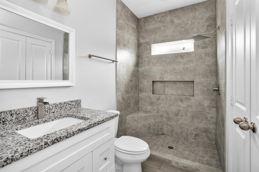 Absolutely gorgeous, like new, 3-bedroom, 2-bath, single-story home sits just off FM 105 in Lake Conroe Village offering quick access to shopping, dining and schools within highly rated Montgomery ISD. The open layout features elevated ceilings and wood-look tile flooring throughout no carpet! The kitchen includes granite countertops, a stylish backsplash and a washer, dryer and refrigerator are included making this truly move-in ready. The primary suite offers a private ensuite bath with a floor-to-ceiling tiled shower and a walk-in closet, while both guest bedrooms feature ceiling fans and generous closet space. Outside, a covered back patio is ready for the grill and a fence provides extra privacy. Beautiful home, prime location and virtually move-in ready. Don't miss out on this one!