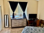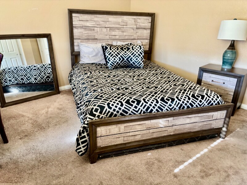 Property Id: 2336117 Large, fully furnished bedroom in a multilevel home, in Silverado Ranch, just minutes away from the 215 and the Strip. The room is located on the 2nd level of a private house and comes fully furnished with a queen size bed, closet, desk, TV and more. It is located directly next to the bathroom that is shared with 2 other working males in their 40s. It has 2 large windows and faces the backyard, so it's very quiet. We have lived here for over 5 years and love the neighborhood. We live on a quiet, circular block that’s great for walking, also not far from Desert Bloom Park. Our neighbors are super friendly and likewise it's very safe here. We're very close proximity to Wal Mart, Smiths, Village Pub, many restaurants and conveniences nearby. Just 5 minutes to the 215 or 10 mins to the 15. This is a month to month arrangement and requires a security deposit, and could be long term with the right fit.