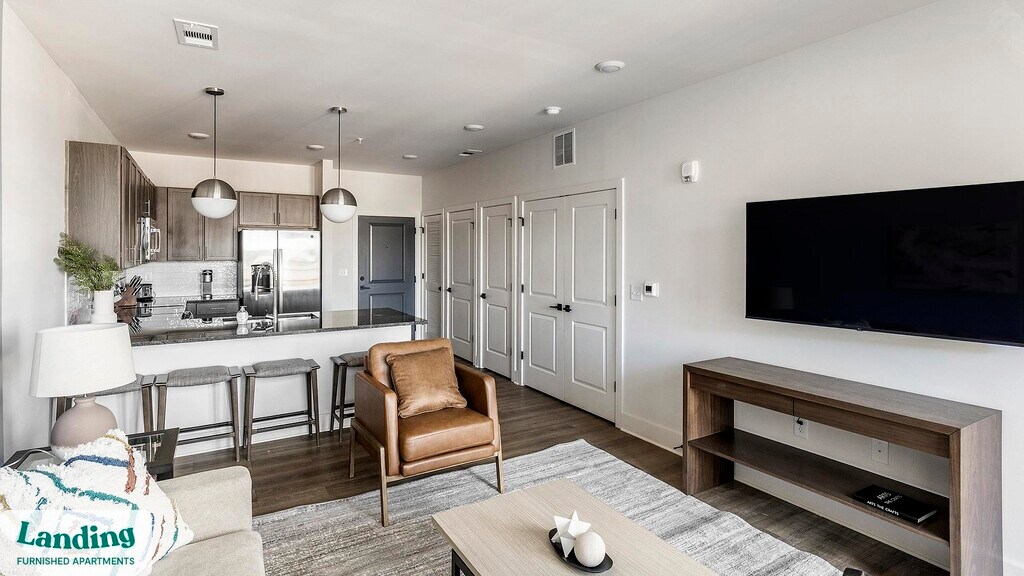 Landing offers flexible lease terms from weeks to months. Please always visit our website or contact us for the latest pricing & availability. Stay longer, save more: 6-Month Minimum base rent: starts at $1594/mo 12-Month Minimum base rent: starts at $1530/mo Landing offers flexible leases across a network of over 35,000 fully-furnished apartments throughout 375+ cities so you can rent on your terms, practically anywhere, and avoid the hassle of paying deposits or application fees. Visit to learn about all the benefits of a Landing membership, see our competitive up-to-date pricing, explore available apartments, take virtual tours, and make reservations online without jumping through traditional rental hoops. Landing's apartments at Livano Town Madison are designed for comfortable, easy living, with the ability to stay as long as you like. Experience living with Landing Every apartment is outfitted with all the modern essentials including: custom-designed furnishings, a fully-equipped kitchen with deluxe stainless steel appliances, a gourmet coffee maker, premium linens, Smart TVs, and incredibly fast, reliable internet for working from home. When you live with Landing, you'll enjoy a hassle-free experience with the added benefit of 24/7 access to our dedicated member experience team. Some of the nitty-gritty: a background check and proof of income are required; we're completely smoke-free; bundled utility packages and pricing vary based on length of stay; pet-friendly options available; listed price reflects a 12-month minimum stay.