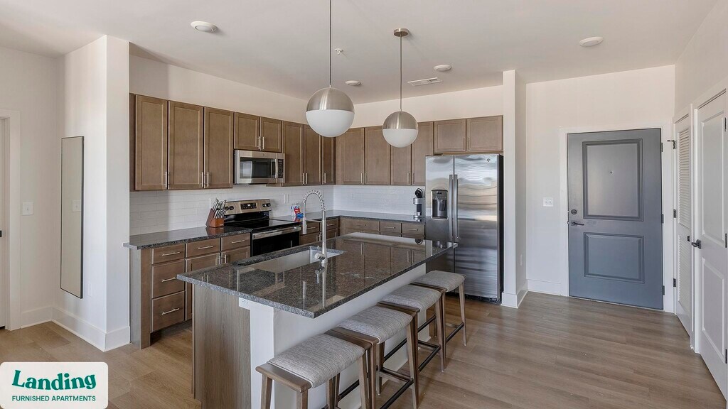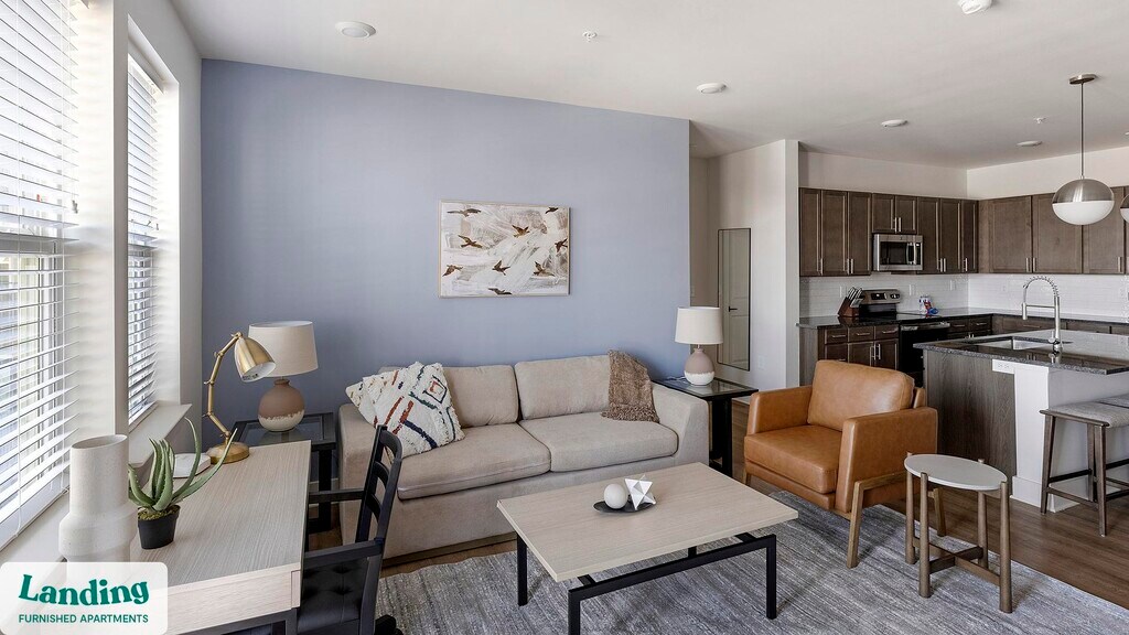 Landing offers flexible lease terms from weeks to months. Please always visit our website or contact us for the latest pricing & availability. Stay longer, save more: 6-Month Minimum base rent: starts at $1755/mo 12-Month Minimum base rent: starts at $1929/mo Landing offers flexible leases across a network of over 35,000 fully-furnished apartments throughout 375+ cities so you can rent on your terms, practically anywhere, and avoid the hassle of paying deposits or application fees. Visit to learn about all the benefits of a Landing membership, see our competitive up-to-date pricing, explore available apartments, take virtual tours, and make reservations online without jumping through traditional rental hoops. Landing's apartments at Livano Town Madison are designed for comfortable, easy living, with the ability to stay as long as you like. Experience living with Landing Every apartment is outfitted with all the modern essentials including: custom-designed furnishings, a fully-equipped kitchen with deluxe stainless steel appliances, a gourmet coffee maker, premium linens, Smart TVs, and incredibly fast, reliable internet for working from home. When you live with Landing, you'll enjoy a hassle-free experience with the added benefit of 24/7 access to our dedicated member experience team. Some of the nitty-gritty: a background check and proof of income are required; we're completely smoke-free; bundled utility packages and pricing vary based on length of stay; pet-friendly options available; listed price reflects a 12-month minimum stay.