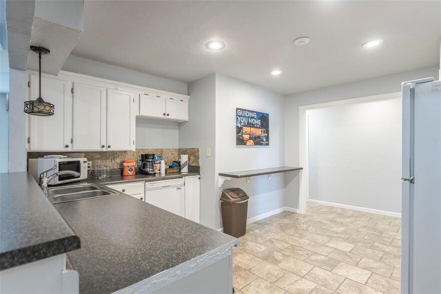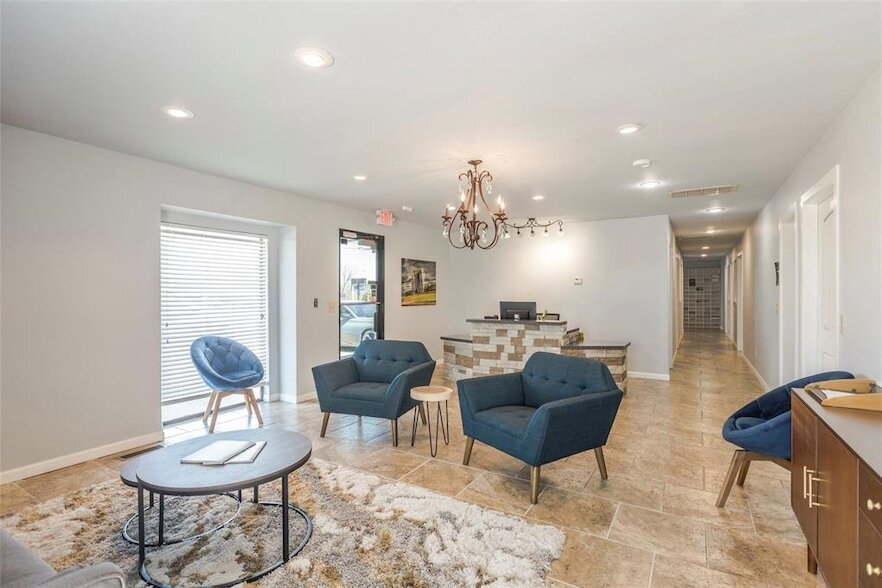 Commercial Lease Prime Corner Lot in Mustang Position your business for visibility and convenience in this 4,100 SF commercial space located on a high-visibility corner lot in Mustang. The layout is ideal for professional offices, training centers, service businesses, or collaborative workspaces. The suite features four private offices, a large open workspace accommodating approximately 22 desks, a kitchen and a separate classroom-style training room in the rear, making it well suited for teams that combine administrative work with instruction or meetings. A flex area with built-in mailbox slots and a dedicated printer/copy room provides additional functional workspace. Additional features include two standard restrooms plus one ADA-compliant restroom, rear storage room, and three front entrances, allowing convenient access and potential flexibility for client flow or departmental separation. The interior received fresh paint in 2024, giving the space a clean, updated appearance. This well-configured layout offers both private offices and collaborative areas, making it a versatile option for a variety of commercial uses in the growing Mustang market.