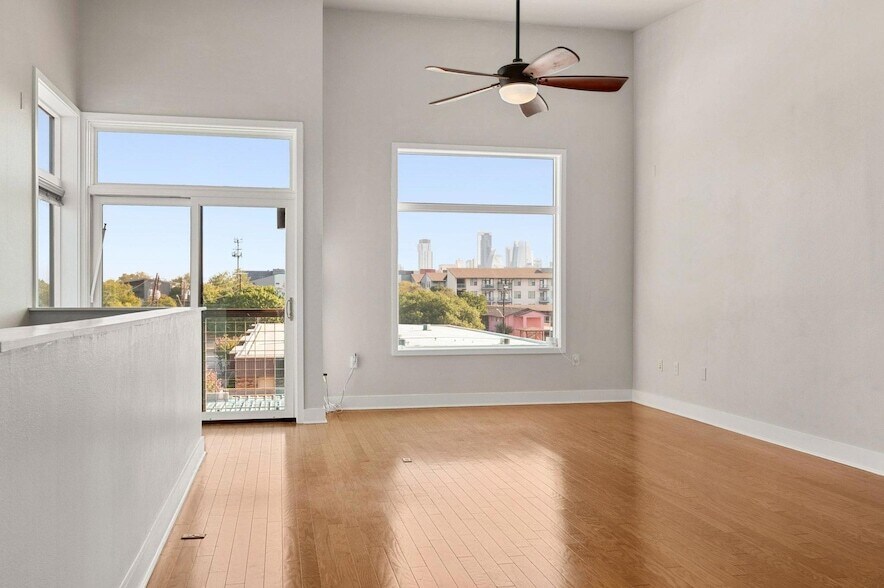 Don t miss this fantastic large, well appointed, two bedroom unit in an optimally located community on the quickly developing S. Lamar strip with easy access to all of south and downtown Austin. Situated at the rear of the community away from the bustle, this peaceful, low maintenance, 3-story townhouse offers 10 ft ceilings, classic finishes, hardwood flooring throughout, large windows, multiple storage closets, and a 2-car garage. Both bedrooms offer en suite bathrooms (with endless hot water supplied by a tankless water heater); the primary bath with dual vanities, large shower, and linen closet, while the second bath contains a deep tub for soaking away your stressful day. The highlight is the top floor s open plan of kitchen, dining and living spaces offers expansive windows on 3 sides, a soaring cathedral ceiling, recessed lighting, ceiling fan, gas range, and abundant counter space and cabinets are perfect for cooking, entertaining and relaxing. The location offers easy walking to local restaurants such as Snooze, El Raval, Brown s BBQ, Loro, Odd Duck, Ramen Tatsu-Ya, Uchi, Eberly, plus entertainment venues of The Saxon Pub, Alamo Drafthouse, Bouldin Acres, and numerous other coffee shops and retail, along with all that Barton Springs Rd offers including Zilker Park and Ladybird Lake. This home combines stylish living with exceptional urban convenience, perfect for full-time living or lock and leave.