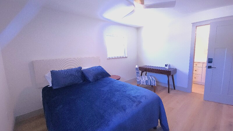 Property Id: 2148858 The Tennessee is a spacious upstairs primary suite in remodeled 2600 sf Knoxville home for travel nurses & medical professionals. Queen bed, desk, Roku TV, mountain view, sound-insulated walls. Private tiled bath with tub/shower, large vanity & 2 bath linen sets. Keypad lock, ceiling fan, linens included. Full access to kitchen, laundry & living areas. Property Overview: