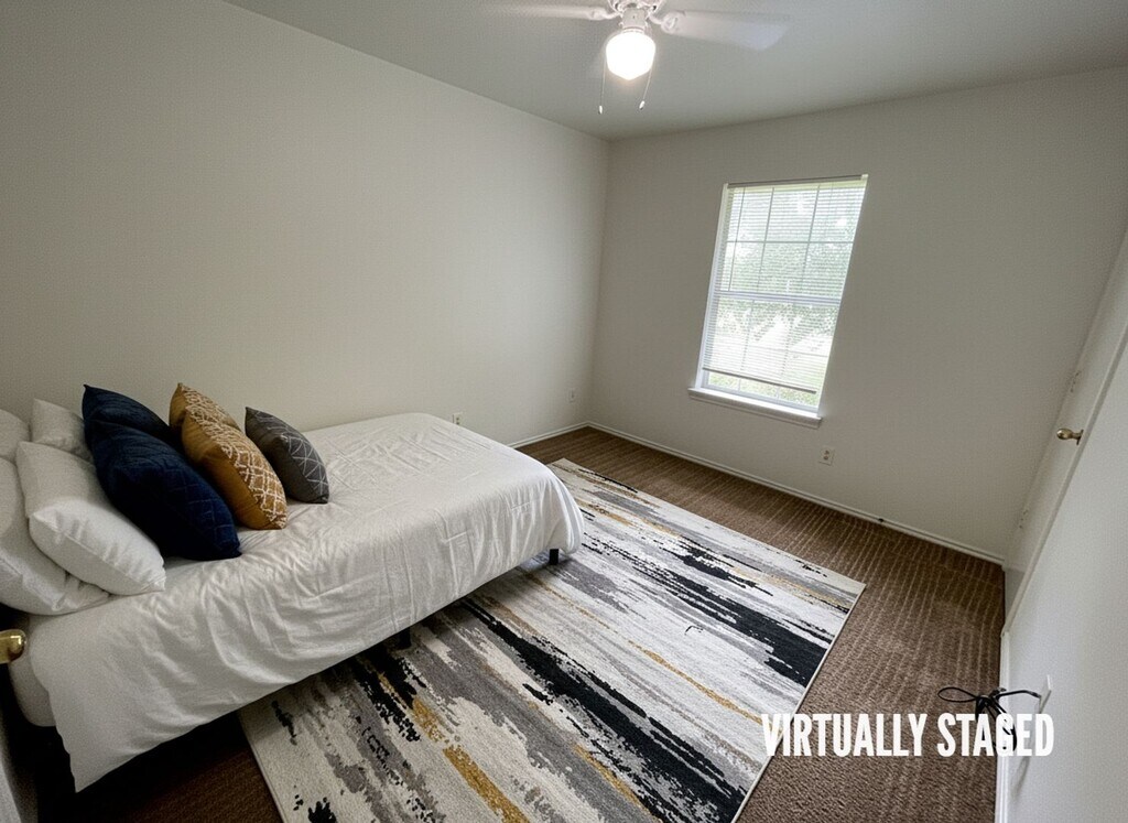 View 360 Tour: This spacious apartment has 2 bedrooms, 1 bathroom, and 795 square feet of space. There is carpet in the living room and 2 bedrooms with vinyl floors in the kitchen, dining area, and bathrooms. The kitchen is complete with spacious dining, double sink with disposal, stove, refrigerator, dishwasher, and lots of cabinets and countertop space. This unit comes complete with washer and dryer hookups and a covered patio. Unit A is downstairs while Units B & C are upstairs. Disclaimer: The furnishings or enhancements shown are AI-generated and intended for inspiration only. They may not reflect the actual scale, condition, or current features of the property.
