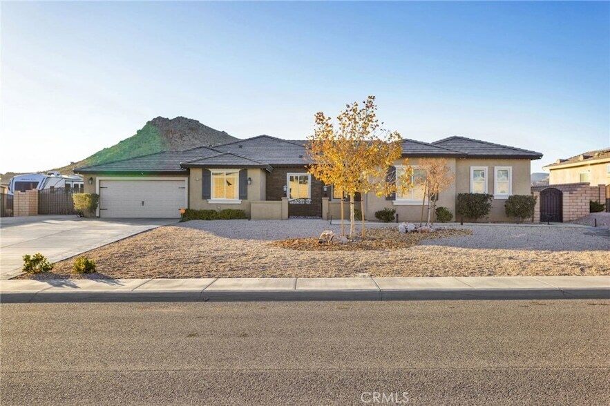 Welcome to this stunning single-story luxury residence located in one of Apple Valley s most desirable areas. Built in 2020 and offering over 3,100 square feet of living space, this expansive home features three bedrooms and three full bathrooms, including two private suites, making it ideal for multi-generational living or anyone seeking space and comfort. From the moment you enter, you ll appreciate the open floor plan, high ceilings, and modern finishes throughout. The gourmet kitchen is the heart of the home, complete with quartz countertops, a large center island, soft-closing drawers, a walk-in pantry, and high-efficiency stainless steel appliances including a gas cooktop, oven, microwave, refrigerator, and range hood. The kitchen flows seamlessly into the dining and family room areas, creating a bright and spacious environment perfect for both everyday living and entertaining. The home also includes a dedicated laundry room with gas and electric hookups. The primary suite offers a peaceful retreat with an oversized layout, a luxurious bathroom featuring double sinks, a walk-in shower, a separate soaking tub, and a large walk-in closet. The additional bedrooms are generously sized, each with access to their own full bathroom, providing comfort and privacy for guests or family members. Step outside to your own private oasis. The backyard features a heated saltwater pool and spa, set within a beautifully landscaped and fully fenced yard. The covered patio and expansive concrete areas offer plenty of space for outdoor dining, lounging, and enjoying mountain and desert views. An automatic gated entry and advanced security features including a full fire-sprinkler system, smoke and carbon monoxide detectors, a security system, and double-pane windows provide peace of mind. This home sits on an almost 20,000 square-foot, level lot and includes an attached two-car garage, RV-friendly space, public utilities, and owned solar power for lower energy costs. Centrally heated and cooled, the property ensures year-round comfort. Located within the Apple Valley Unified School District, this home is available for short-term, long-term, or month-to-month lease options, with pets considered on approval. Furnishings are negotiable. Experience modern luxury, privacy, and resort-style amenities in this exceptional Apple Valley home available for move-in starting December 16, 2025.