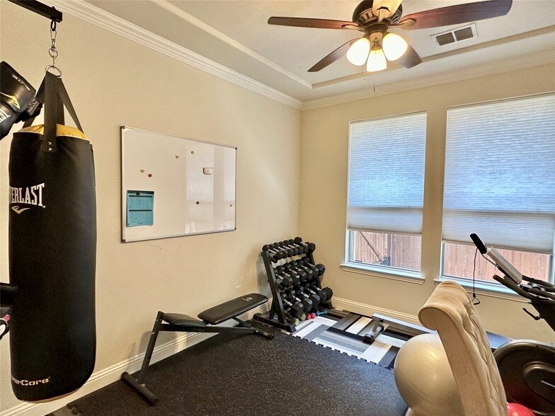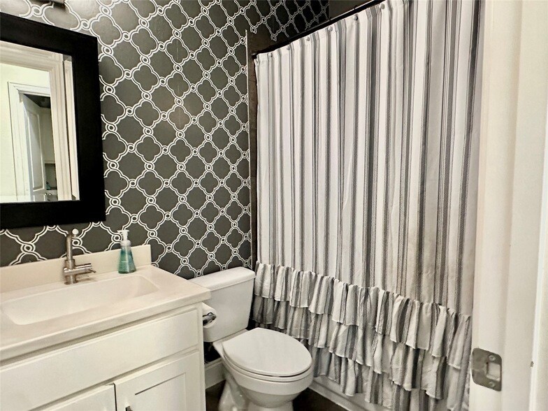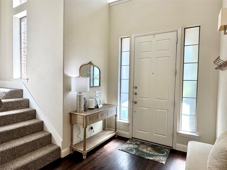 Stunning home in Stonebridge Ranch with a sleek, contemporary design! The first floor boasts real hardwood floors. The chef's kitchen is equipped with top-of-the-line stainless steel appliances, a glass tile backsplash, granite countertops, and a 5-burner gas cooktop. The master suite features a beautiful tray ceiling and offers a breathtaking view of the private backyard. It also has access to an oversized master bathroom. On the main level, there is an additional bedroom and full bath for family or guests. Upstairs, a spacious game room provides the perfect space for entertainment. The home backs onto a creek, offering a serene and private backyard view. The community amenities include an aquatic center, beach and tennis club, picnic areas, hiking and biking trails, as well as lakes and ponds.