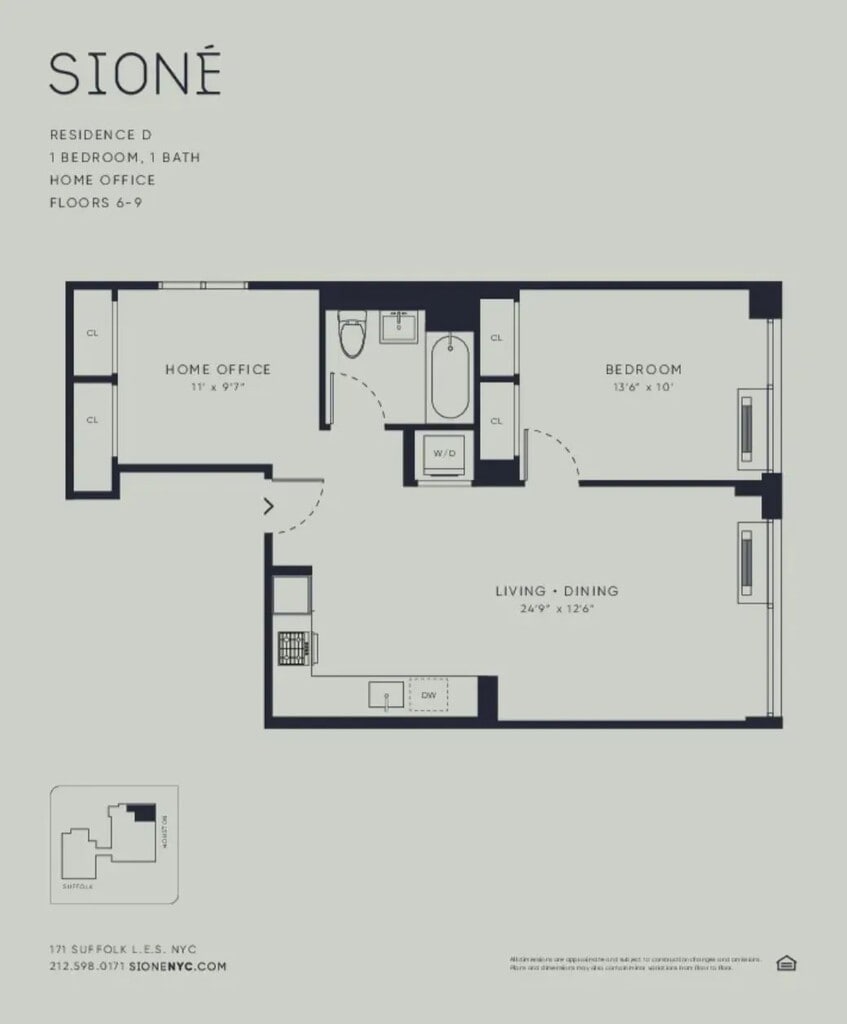 *GORGEOUS NEWLY RENOVATED 1BR + HOME OFFICE (can be used as a 2BR) w/ LARGE COMMON AREA & OPEN KITCHEN*Welcome home to The Sione - one of the nicest new-construction elevator/doorman buildings on the Lower East Side.Available for *IMMEDIATE* occupancyThe D-line is a nicely renovated 1BR + home office layout with a queen-sized bedroom, a home office that can be used as a second queen-sized bedroom, a beautiful open high-end kitchen, large common area, in-unit washer/dryer and plenty of closet space.Apartment Features:-Newly constructed with condo-level finishes-Open layout with large common area - perfect for relaxing & entertaining-Queen-sized bedroom plus home office (both with two closets)-High-end kitchen with Blomberg and Bosch appliances (including dishwasher) and customized walnut cabinetry-Updated marble and white quartz bathroom with polished hardware and shower-wand-Large white oak plank flooring-Oversized sound-proof windows with solar shades-Nest thermostat-Keyless entry and smartphone-integrated virtual doorman systemBuilding Features:-Elevator and doorman-Lobby lounge and co-working space-State of the art gym and fitness facility with peloton and techno gym equipment-Private theater room-Tenants lounge with billiards-9th Floor roof green garden-14th Floor Rooftop terrace featuring a private dining pagoda with seating for 12-Rooftop BBQ stations-Rooftop fireside lounge seating-Rooftop outdoor screening area, sun loungers and misting shower-14th Floor indoor roof lounge with kitchenette, lounge and dining area all with panoramic city views-Bike storage-Additional ButterflyMX virtual doorman system (in addition to doorman)-Laundry in buildingNote: photos are representative of finishes and space and may not be the exact layout.