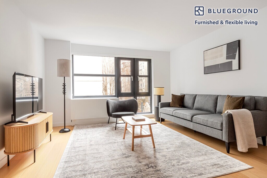 Discover the best of New York, with this one bedroom apartment in Lower East Side. It’ll be easy to simply show up and start living in this elegantly furnished apartment with its fully equipped kitchen, beautiful living room, and our dedicated, on-the-ground support. (ID #NYC2042) The advertised rate of $6,130/month is the lowest available price, based on a 1 month(s) and 29 day(s) stay with a move-in date of February 2, 2027. If you’re looking for a 1-year stay, the rate is $6,640/month. Rates vary depending on the duration of stay, season, and other parameters. For exact pricing and additional pricing components, please visit our website and enter your desired move-in and move-out dates. The rate is applicable when billed upfront; it can be higher if billed in multiple payments. Brokers are welcome to reach out. Were you looking for an unfurnished lease? Try Blueground instead and upgrade from unfurnished to furnished living: - Furnished at rates comparable to unfurnished - No setup or furniture costs - save thousands - Move-in ready - save time, just bring your suitcase Designed with you in mind Gorgeous furniture, fully equipped kitchen, smart TV, and a premium wireless speaker are just a few of the amenities you’ll find inside this one bedroom apartment. Ideally located in New York, you’ll find a lot to love outside as well. When you’re ready to relax, you’ll be happy to discover every Blueground bedroom comes with superior quality mattresses, fully stocked linens, and cozy towels. We handle everything so you can simply show up and start living. This apartment also offers in-apartment laundry. Sleeping arrangements Queen Bed, 63in/160cm Amenities Building amenities unique to this one bedroom apartment include an on-site: - Doorman - Dryer - Elevator - Washing machine - Lounge - Media room - Pets allowed - Rooftop BBQ Arrival and ongoing support The entire apartment is yours to enjoy! Throughout your stay, you’ll have access to our Client Experience team through the Blueground App. You can schedule additional cleanings, submit maintenance requests, and view our neighborhood recommendations with just a few taps. We’ll share all details upon confirmation of your stay. Ideally Located This furnished property is located in the Lower East Side, also known as LES. The neighborhood never sleeps thanks to the booming bars, music venues and restaurants that it offers. Long-time residents mingle with youngsters who nest nearby, giving the area unique, eclectic character. During the day, the LES is rather quiet, providing locals with the chance to stroll around the hidden boutiques across the neighborhood. On the weekends, go for lunch at one of the area’s trendy restaurants. Pathways along the East River offer great views of the Williamsburg Bridge and are ideal for biking. Wall Street, Union Square, and Grand Central are only a 20-minute subway ride away. Other things to note Building amenities may have an extra cost. This Blueground apartment has flexible lease options, allowing you to book it for one month, a year, or more. Pets are welcome, though weight limits and breed restrictions apply and may incur fees. Brokes CYOF. We take great pride in ensuring every photo displayed is shot in our own units with our actual furnishings. That said, we regularly refresh our decor and furniture arrangement, which may differ from what’s pictured. [SI]