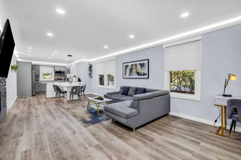 Welcome to Queen City, Charlotte, NC, and to this charming bungalow located in the historic Belmont neighborhood, newly renovated for your comfort. Situated close to NoDa, the city's arts and entertainment district, you'll be in close proximity to eclectic galleries, music venues, and artisan gift shops. This fully furnished, modern home boasts three bedrooms and two bathrooms, featuring an open living and kitchen area for an inviting space to relax or entertain. Upon arrival, you'll be greeted by a perfectly manicured front yard with beautiful landscaping and architectural details. The front porch, complete with comfortable outdoor seating, is the perfect spot to enjoy your morning coffee or unwind after a day of exploring this historic city. Inside, the house features custom-made furniture and attention to detail you'd expect from a luxury vacation home rental. The modern living room is spacious and comfortable, with a large sofa and accent armchair that add a bright pop of color. The dining and kitchen area offers plenty of room to gather around a beautiful modern wood table for a home-cooked meal or local takeout. The huge backyard and spacious front porch are great for evening conversations and family connections. For an additional fee, daily housekeeping services are available upon your request. Pets are allowed at an additional $130 plus tax fee. The guest must inform about the pet right after the reservation. One pet with a 25-pound maximum limit per unit is allowed. All dogs must remain on the leash while in public spaces and the pet owner must pick up all waste. Dogs must not exhibit excessive barking or other disturbing behaviors. The pet owner is responsible for all damages to the property. Any violation of the policy will incur a $500 fine plus the cleaning costs necessary to clean the unit. Only a few blocks from the Light Rail Station, this bungalow is close to all the charming hot spots, including Optimist Hall, great new breweries, boutiques, restaurants, and Cordelia Park. You are in the heart of Belmont and the NoDa area, with a short ride to Downtown Charlotte and attractions like the NASCAR Hall of Fame, The Billy Graham Library, BB&T Ballpark, Discovery Place, Carolinas Aviation Museum, Hendrick Motorsports Complex, and DefyGravity Charlotte. Guests must be at least 21 years of age to make a reservation and a State Identification Card or Driver License copy will be requested upon booking. There is a security camera on the property. No parties or excessive noise are allowed and guests agree to observe quiet hours between 9 pm and 8 am. No smoking of any kind in the unit and on the property is permitted. Any violation of the smoking policy will incur a $200 fine plus the cleaning costs necessary to remove the smoke odor.