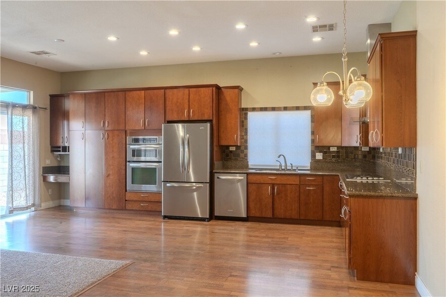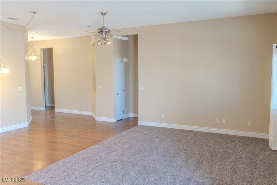 Beautiful single-story townhome in the heart of Green Valley. 2 large bedrooms, 2 baths, wide open living and dining areas, custom kitchen cabinets, granite counters, stainless steel appliances, tile, luxury vinyl plank flooring, and new comfy carpet in the primary bedroom. Covered patio, 2-car garage with storage cabinets. All in a lovely gated community with a community pool, spa, gate, and clubhouse in Green Valley Ranch. Convenient to The District, shopping, dining, parks, and recreation areas, and the freeway.