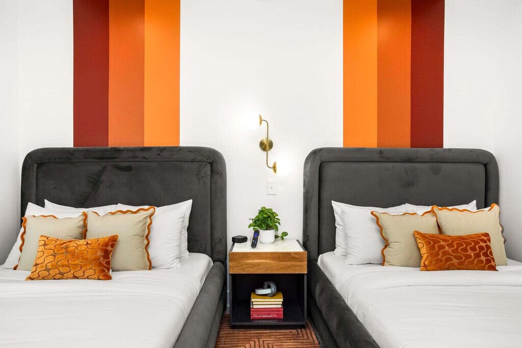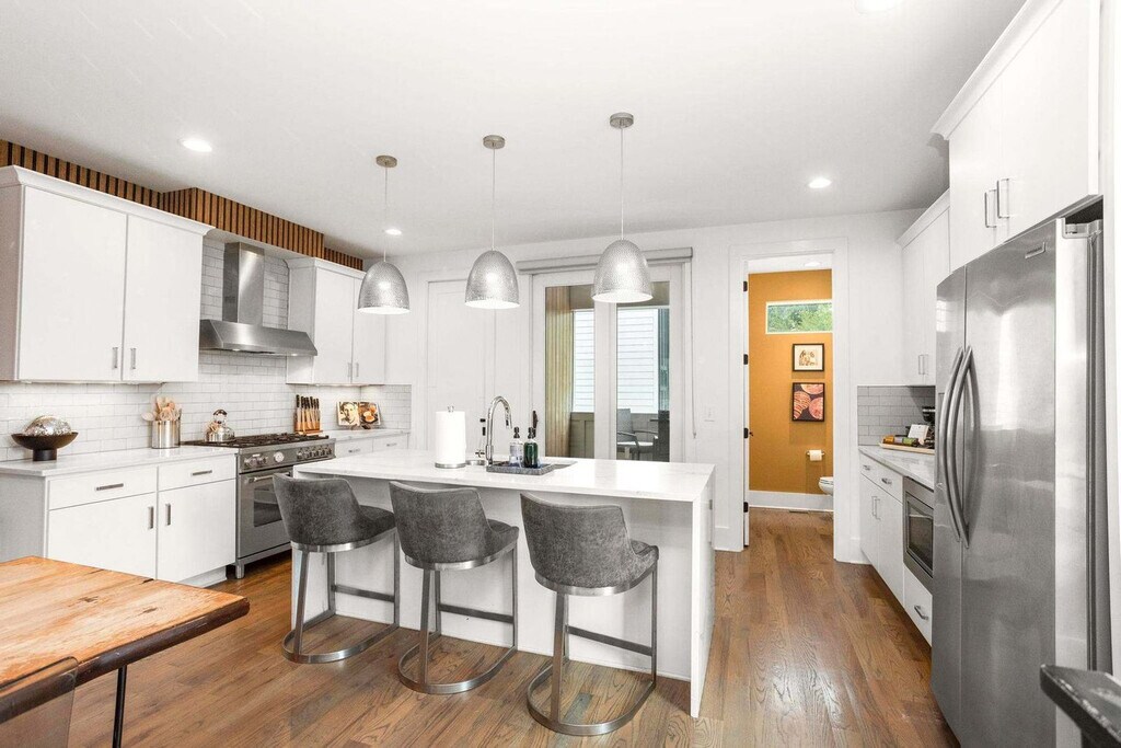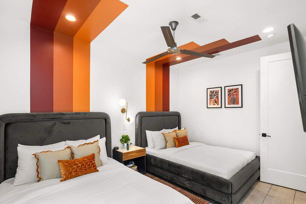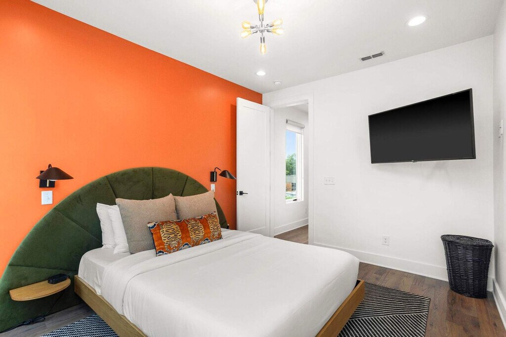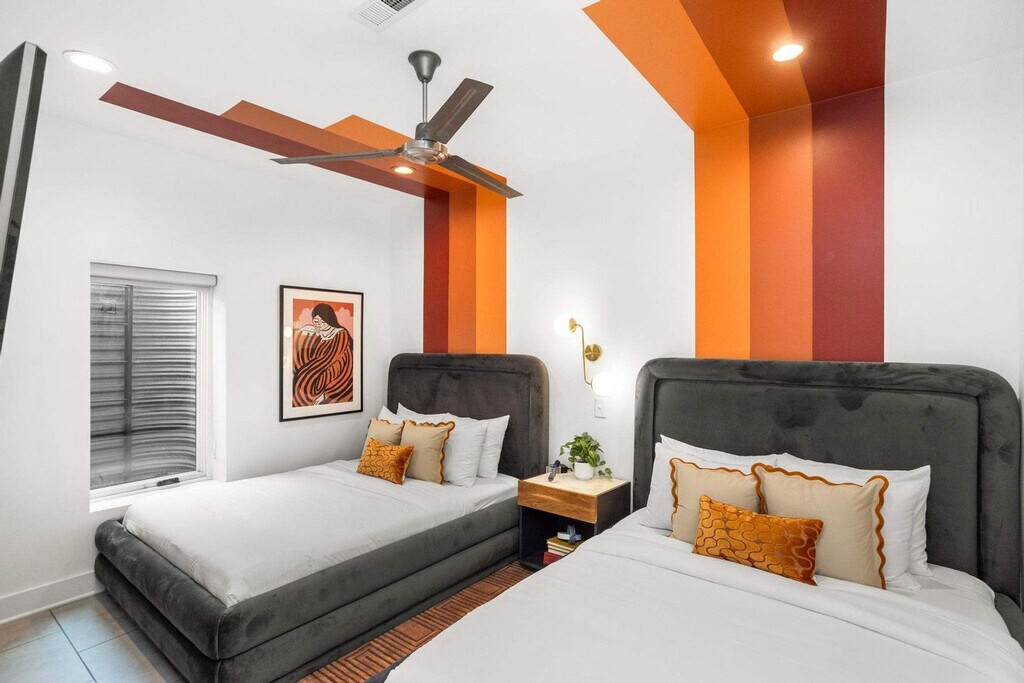 Welcome to this vibey retreat, part of a premium Nashville collection of boutique vacation rentals on legendary 8th Ave South. Just 2.3 miles from Broadway and closer to The Gulch and 12th South, this apartment is walkable to Hattie B's, live music at The Basement and Eighth Room, Zanies comedy, and 8th & Roast coffee. Professionally designed with upscale amenities, it includes a 2-car garage and hotel-grade linens, making it perfect for your Nashville visit. This thoughtfully designed 4-level home accommodates up to 12 guests, offering a perfect balance of togetherness and personal space. Bedrooms are located on levels 1, 3, and 4, each with private ensuite bathrooms. The expansive 2nd level serves as the heart of the home with an open-concept kitchen, dining, and living area flowing onto a balcony off the kitchen, plus a convenient half bath. The 4th-level lounge doubles as a second living area with seating, a TV, and its own private patio accessible through a sleek modern garage-style door. With 2 living areas, 3 outdoor spaces, and every bedroom having its own bathroom, this layout eliminates typical group rental challenges, ensuring comfort and flexibility for everyone. Early check-in or late check-out must be pre-arranged. If the night prior to your stay is available, it can be blocked off for you at half the price for an early check-in. Similarly, if there is no one booked the night of your check-out date, the night can be blocked off for a guaranteed late check-out at half the price. Any stay of 3 weeks or more will incur an extra cleaning fee. Situated in a prime location just minutes from Broadway and all major attractions, this apartment is on 8th Avenue South and adjacent to the Waverly Neighborhood. Walk to Hattie B's, Zanies, Baked on 8th, and other local restaurants, cafes, and shops. It's a short drive to popular destinations: 9 minutes to Broadway and Bridgestone Arena, 7 minutes to The Gulch, 5 minutes to Geodis Park, 8 minutes to Nissan Stadium, 4 minutes to 12 South, 6 minutes to Vanderbilt, and 5 minutes to Belmont. Ubers and Lyfts are readily available for convenient transportation. Quiet hours are in place to respect neighbors by keeping outdoor noise levels down. Smoking is not allowed inside or within 25 feet of the property. A $500 fee will apply if smoke of any kind is detected in the home. Excessive mess is not covered by the cleaning fee, and additional fees may apply if the space is not left in good condition. Early check-in or late check-out must be pre-arranged, and any non pre-arranged late check-outs will result in withholding of deposit. A laptop computer is not included. Registration Number: