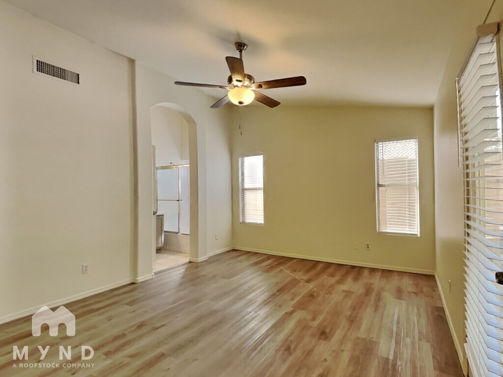 **MOVE-IN SPECIAL!!! $750 OFF FIRST FULL MONTH’S RENT WITH DEPOSIT BY 11/8/25** **SPLIT THE PAYMENT! Reserve your new home by paying 50% of your security deposit now, with the remaining balance due before move-in.** Welcome to this charming single-story home offering 3 bedrooms, 2 bathrooms, and 1,336 sq ft of comfortable living space. The open floor plan features a bright living room that seamlessly transitions into the kitchen and dining area. The kitchen is a chef's delight, complete with a full suite of stainless steel appliances and ample counter space. The primary bedroom is a peaceful retreat, boasting a large walk-in closet and a private attached bathroom with dual sinks. Two additional bedrooms and a full bathroom complete the layout. The property also includes a dedicated laundry room with washer and dryer hookups and an attached two-car garage. Step outside to the covered patio and fenced backyard, perfect for relaxing and entertaining. This smart home is outfitted with a smart lock, thermostat, and hub, providing modern convenience and security. Located in the desirable Kingswood Parke Community, residents have access to fantastic amenities, including a lake, ramadas, volleyball, horseshoe, tennis, and basketball courts. With quick access to US-60 and Arizona State Route 303, your commute will be easy. Schedule your tour today! _____ RENT WITH MYND -Fast Online Application (valid for 30 days) -Mobile App to Pay Rent and Track Services -Affordable Renter's Insurance Lease term: 12 months ONE-TIME FEES Non-refundable $59.00 Application Fee Per Adult One Time Move In Fee $199 REQUIRED MONTHLY CHARGES* $1845.00: Base Rent $54.95/month: Residents Benefits Package provides residents with on-demand basic pest control, as-needed HVAC air filter delivery, smart home features, Identity Theft Protection, and access to an exciting rewards program. *Estimated required monthly charges do not include the required costs of utilities or rental insurance, conditional fees including, but not limited to, pet fees, or optional fees. See our website for more information: CONDITIONAL FEES This is a pet-friendly property! 3 Pets Max; Pet Move-In Fee $199 per pet; Pet Rent per pet varies based on Paw Score. Breed restrictions apply. All pets must be registered at Please visit our website for details You can reach us directly at , or call , or text for more information. Mynd Property Management Equal Opportunity Housing License # CO689807000; CO689807001 www.mynd.co Mynd Property Management does not advertise on Craigslist or Facebook Marketplace. We will never ask you to wire money or pay with gift cards. Please report any fraudulent ads to your Leasing Associate. Federal Occupancy Guidelines: 2 per bedroom + 1 additional occupant; 2 per studio. Please contact us for move-in policy and available move-in date.