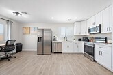 Feel at home in this charming single-story apartment featuring two bedrooms and one full bath. The residence includes a king-size bed and two single beds, offering comfort for all guests. Enjoy the convenience of an in-unit washer and dryer, a fully fenced backyard with a patio set, and free parking. The apartment is fully furnished and equipped with central AC and heating, ensuring a comfortable stay year-round. The apartment boasts a fully equipped kitchen with a full-size fridge, a 4-burner stove, a microwave, an oven, a dishwasher, an air fryer, and a blender. It also includes cookware, a coffee maker with ground coffee and mugs, and drinking and wine glasses. The dining area features a set with four seats, perfect for enjoying meals together. Relax in the living area with three smart TVs, and enjoy high-speed WiFi throughout the home. Pets are welcome with a non-refundable fee of $150 per pet. The apartment offers free parking for added convenience. Located conveniently close to various attractions, the apartment is just 3.7 miles from Chase Field and 4.5 miles from Downtown Phoenix. Explore nearby destinations such as Papago Park, Phoenix Zoo, and Desert Botanical Garden, all within a short drive. The property is also near major hospitals and universities, including Banner - University Medical Center Phoenix and Arizona State University, making it ideal for medical professionals and students. The apartment is pet-friendly, and guests can enjoy the ease of a smart lock and lockbox for secure access. Blackout curtains are provided for added privacy and comfort during your stay. The apartment includes a desk and chair, providing a comfortable space for remote work. High-speed WiFi is available to ensure seamless connectivity for all your work-from-home needs. [SI]