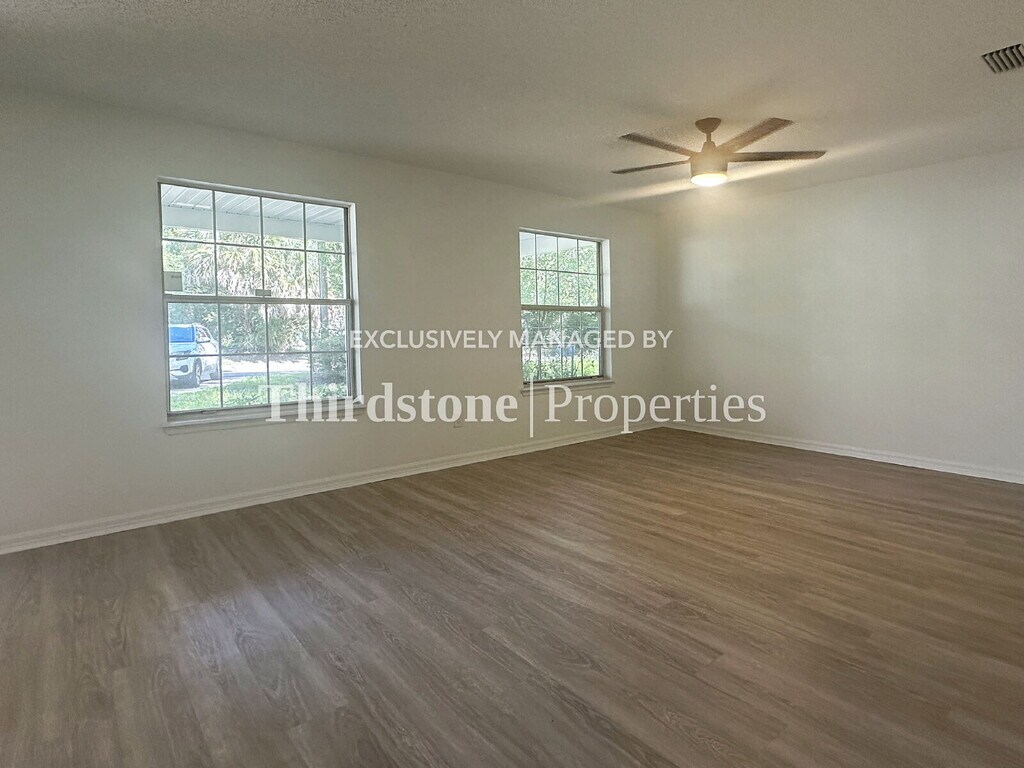 Welcome to this beautifully updated 3 bedroom, 2 bath home showcasing modern comfort and style. A charming covered front porch invites you inside to discover bright and durable vinyl plank flooring that extends throughout the home. The kitchen has been completely transformed, featuring white shaker cabinetry with ample storage, a stunning blue tile backsplash, bright quartz countertops, and stainless steel appliances, including an over-the-range microwave and dishwasher. Both bathrooms feature new vanities, while matching ceiling fans throughout the home help circulate cool air and enhance comfort. Large windows fill each room with abundant Florida sunlight, creating a warm and inviting atmosphere throughout. Washer and dryer hookups are available for added convenience. One off street parking spot is available. The residents are responsible for all utilities and lawn care. Pets are welcome, breed and weight restrictions may apply. Application fee $55 per person 18 and over. Lease Term: 12 months. If your application is approved, we require the lease to be signed and the security deposit to be dropped off to our Riverside office in the form of a cashier’s check or money order within 48 hours. There is also a one-time $100 lease administration fee due when the security deposit is dropped off. This fee is not based on the number of applicants. MINIMUM CRITERIA: VERIFIED GROSS INCOME MUST BE AT LEAST 3 TIMES THE MONTHLY RENT. ALL TENANTS 18 YEARS OR OLDER MUST SUBMIT AN APPLICATION. MINIMUM CREDIT SCORE OF 550. ADDITIONAL $500 REFUNDABLE DEPOSIT REQUIRED FOR ONE PET. $100 ADDITIONAL DEPOSIT PER PET. THERE WILL BE A $35 MONTHLY PET RENT APPLIED PER PET.Quartz Countertops Vinyl Plank