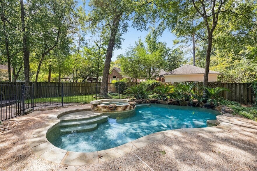 Beautifully updated 4-bed, 2.5-bath home for lease in The Woodlands, zoned to top-rated Bush Elementary & The Woodlands High School. All bedrooms are upstairs. Enjoy a stunning saltwater Pebble Tec pool/spa surrounded by lush landscaping and a spacious covered patio perfect for relaxing or entertaining. Inside features new double glass windows, elegant engineer wood floors, fresh carpet, fresh paint, updated vanities, faucets, and modern finishes throughout. Located near parks, trails, shopping, dining & medical centers. Minutes from Hughes Landing, Market Street & I-45. Experience the best of The Woodlands lifestyle with nature, convenience & exceptional schools!
