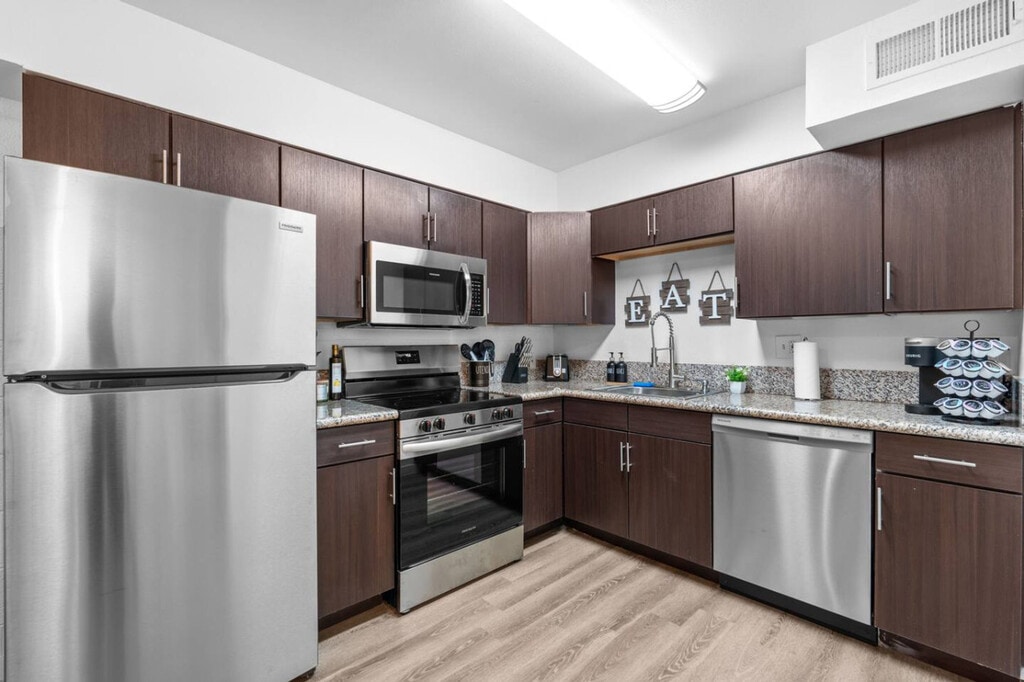 Welcome to your urban getaway, steps from downtown Tempe and ASU! Feel at home in this 1-bedroom apartment that is perfect for business professionals and university visitors. This modern apartment is fully stocked with items and amenities to cater to business travelers and couples. It features a stylish living room with a smart TV, games, a comfortable couch, and a dedicated workspace with high-speed Wi-Fi. The fully stocked kitchen has brand new appliances to enjoy a homecooked meal. Other notable amenities include in-unit laundry, free reserved parking, fully stocked bathrooms, noise machines, a hair dryer, and an iron with board. Unwind at the apartment community and enjoy the resort-style pool, outdoor BBQ grill, and a firepit with seating. Free reserved parking is available on the premises. Within minutes of the apartment are highly rated restaurants, coffee shops, nightlife, and grocery stores. Downtown Phoenix, Old Town Scottsdale, Tempe train station, and Phoenix Sky Harbor Airport are 15 minutes or less away. Please respect the neighbors by keeping noise to a reasonable level. Aggressive dog breeds or dogs weighing over 100 pounds are not allowed. [SI]