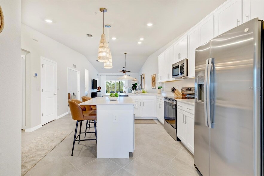 Brand new 2BR/2BA + den located in the heart of a Wellen Park Golf & Country Club community! This light-filled home offers an open floor plan, split bedrooms for added privacy, and a versatile den perfect for a home office or guest space. Enjoy serene golf course views and lush landscaping from your private front & back screened-in patio. The kitchen features quartz countertops, stainless steel appliances, and ample cabinet space and is completely stocked with all of your cooking needs. Spacious primary suite with King bed, dresser, TV & night stands, walk-in closet and dual vanities and gorgeous golf course views. Second bedroom offers Queen bed and den has pull out sofa that pops up in to full sized queen bed. All linens and towels and beach chairs included in this monthly rental. Community amenities include pickleball & tennis courts, fitness center, spa, resort-style pool, tiki bar and vibrant social calendar. Located close to downtown Wellen Park with restaurants and shopping and nightly entertainment, Braves Spring Training stadium, tons of local events and close to 5 of Southwest Floridas top beaches! You will love your stay here and want to come back for years to come!