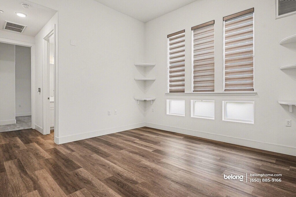 Fresh finishes and generous shared spaces define this brand-new 4-bedroom, 3.5-bath home, offering a bright and welcoming backdrop for everyday life. The main living area feels open and airy, with wood-inspired flooring and recessed lighting that keeps the atmosphere light from morning through evening. Just off the living space, a private balcony provides a pleasant extension for fresh air and quiet moments. The kitchen stands out with sleek cabinetry, ample prep surfaces, and a large island that invites both casual meals and conversation. Pendant lighting adds a warm glow, while modern appliances support daily cooking with ease. Storage and layout choices feel intentional, supporting a well-organized routine. A valuable bonus room on the lower floor expands your options, complete with a kitchenette that works well for guests, hobbies, or flexible use. Life here extends beyond your front door. The community clubhouse includes a fully equipped gym, and a centrally located pool offers a refreshing place to unwind or gather with neighbors. This Fremont location sits directly across from Warm Springs BART, making Bay Area commuting straightforward. Nearby destinations include Pacific Commons shopping, local cafes and restaurants, and outdoor escapes like Mission Peak Regional Preserve and Central Park. *Our homes come as-is with all essentials in working order. Want upgrades? Request it through the Belong app, and our trusted pros will take care of the rest!