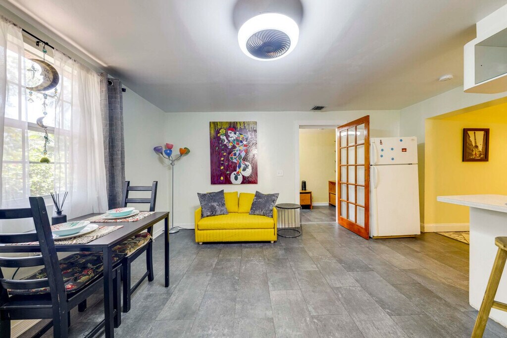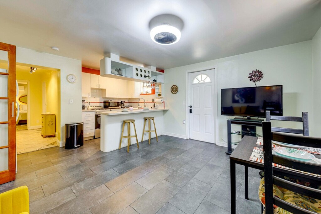 Blend comfort and productivity in this 1-bedroom, 1-bath duplex home in Miami, perfect for working professionals and long-term stays. Situated just 3 miles from Oleta River State Park and 4 miles from Aventura Mall, this vacation rental offers a private office and outdoor dining space, making it ideal for both work and leisure. Feel at home in this well-located retreat. This thoughtfully designed apartment features a queen bed in the bedroom and a full sleeper sofa in the living room, providing comfortable sleeping arrangements. The shared outdoor area includes a dining set, perfect for enjoying meals al fresco. Inside, you'll find a dedicated office with a printer and scanner, a smart TV with cable, a dining table, and a breakfast bar. The fully equipped kitchen includes a stove, oven, refrigerator, microwave, toaster, blender, drip coffee maker, cooking basics, dishware, and flatware. The property offers free WiFi and a washer and dryer located outside for your convenience. Parking is available in a shared gravel area for one vehicle. Located just 3 miles from Oleta River State Park and 4 miles from Aventura Mall, this apartment offers easy access to outdoor adventures and shopping. The neighborhood provides a blend of tranquility and convenience, making it a great base for exploring Miami. The apartment is a single-story duplex home with one step to enter. The homeowner lives on-site in a separate unit and may be present during your stay. The parking area and outdoor spaces are shared. Smoking, pets, and events or large gatherings are not allowed. Guests must be at least 21 years old to book. Additional fees and taxes may apply, and a photo ID may be required upon check-in. Includes a dedicated office with a printer and scanner, making it remote work-friendly. A laptop computer is not included. [SI]