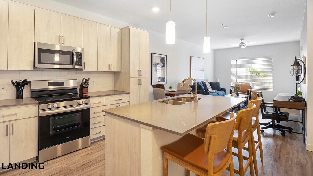 Landing is a top-rated, fully furnished apartment network with thousands of homes across 250+ U.S. cities. With premium amenities, a mobile app to manage your stay, and 24/7 support. Our apartments have everything you need for monthly and longer stays. 6-Month+ Stay base rent: starts at $1924/mo 12-Month+ Stay base rent: starts at $1810/mo Landing's apartments at The Falls at Crismon Commons are designed for comfortable, easy living, with the ability to stay as long as you like. All Landing apartments include: - Fast Wi-Fi - Stylish furnishings - Fully-stocked bathroom - Smart TVs - Comfortable bed - Professionally cleaned - Guest support Stay longer for cheaper! The longer you stay, the bigger your discount. Price advertised is for a 12-month stay, including all utilities and fees, and may vary based on availability. We manage multiple units at this property. While all feature a similar style and furnishings, the layout and specific design elements may vary slightly from the photos provided. Some of the nitty-gritty: a background check and proof of income are required; we're completely smoke-free; pet-friendly options are available; parking is subject to availability.