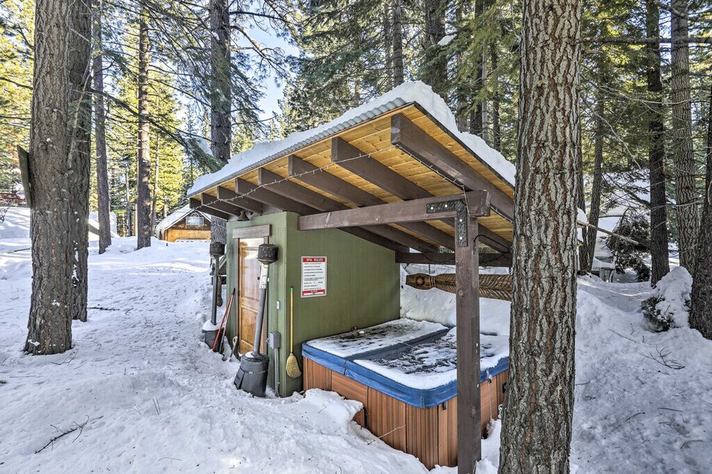 The advertised rate of $3,353/month is the lowest available price, based on a 1 month(s) stay with a move-in date of April 6, 2026. Rates vary depending on the duration of stay, season, and other parameters. For exact pricing and additional pricing components, please visit our website and enter your desired move-in and move-out dates. The rate is applicable when billed upfront; it can be higher if billed in multiple payments. Feel at home in this 2-bedroom cabin that offers a warm, cozy, and updated space. Access to the bedrooms is only by stairs. This cabin features a smart TV, wood-burning stove, dining bar, loft, books, board games, stereo, and cozy cabin decor. The kitchen is fully equipped with cooking basics, stainless steel appliances, spices, dishware, flatware, toaster, tea kettle, drip coffee maker, and blender. You can also enjoy the wooded yard with a private hot tub and heating lamp. Other amenities include complimentary toiletries, a hair dryer, an iron and board, central heating, free Wi-Fi, and a washer/dryer. Driveway parking is available for 3 vehicles, and RV/trailer parking is also available. Whether you're seeking beach time or powder days, this vacation rental will deliver. Within a few miles, hit the slopes at Heavenly, or experience South Lake Tahoe's premier beaches, along with the striking beauty of Emerald Bay. No smoking, pets, events, parties, or large gatherings are allowed. Due to local wildlife, food and trash should not be left outdoors. Exterior security cameras are located around the perimeter of the home, facing a 360-degree view of the outskirts of the property. The cameras are outward facing and actively record video and sound while guests are in residence. The property does not have air conditioning. [SI]