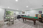 Welcome to Milltown Cove Escape on Lake Hartwell, your ultimate family-friendly lake house designed for endless fun and cherished memories. This delightful retreat comfortably sleeps 11 and features an open-concept living room, kitchen, and dining room that extends to a four-season porch with a great view of Lake Hartwell. The house invites you to enjoy the inviting lake fun, whether it's a refreshing dip or a lakeside gathering. The downstairs living room offers a dedicated recreational area with a pool table, ping pong table, and cornhole, ensuring hours of fun and entertainment. Equipped with kayaks, you can explore the serene lake and its hidden coves. After a day of excitement, gather in the cozy living room with comfortable seating and large windows showcasing panoramic views of the lake. The property includes a pool table, BBQ grill, boat slip, fire pit, and kayaks for your enjoyment. Fishermen will love the deep water and some of the best fishing in Georgia. Fast Wi-Fi is available for streaming videos. Nestled in a quiet lakefront neighborhood, this location and the Lake Hartwell area can't be beaten. Just 15 minutes from downtown Hartwell, you'll find kayaking, hiking, breweries, wineries, shopping, golfing, fishing, star gazing, boating, and great restaurants. Nearby attractions include Downtown Cafe, Backstreet BBQ, Peet's Coffee & Tea, New York Pizza, Hartwell Golf Club, Inc., and Hart County Recreation Department. A motor vehicle is needed to get around, with room for 4 cars in the driveway. Before receiving check-in instructions, you must sign the rental agreement. Failure to do so will result in cancellation without a refund. Keyless entry is provided for convenience. The home offers fast Wi-Fi for streaming videos and staying connected. [SI]