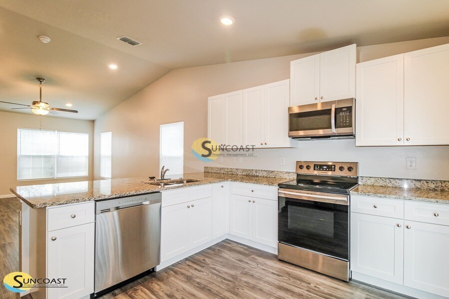 Step into this beautiful 4-bedroom, 2-bathroom rental home offering modern style and comfort, perfect for your next move! Featuring an open-concept floor plan, this home is designed for modern living and includes durable wood-look vinyl plank flooring throughout, combining elegance with low-maintenance convenience. The spacious living area is ideal for relaxing or entertaining, while the gourmet kitchen boasts granite countertops, stainless steel appliances, and ample cabinet storage-perfect for cooking and hosting gatherings. Additional highlights include an attached garage for secure parking and extra storage, as well as a pet-friendly policy (breed approval required) with a non-refundable pet fee, so your furry friends are welcome too! Dont miss your chance! Apply online today to secure this incredible rental before its gone. Photos are for illustration purposes only and some details may differ! All SunCoast Property Management residents are enrolled in the Resident Benefits Package (RBP) for $75.00/month which includes liability insurance, credit building to help boost the residents credit score with timely rent payments, up to $1M Identity Theft Protection, HVAC air filter delivery (for applicable properties), move-in concierge service making utility connection and home service setup a breeze during your move-in, our best-in-class resident rewards program, on-demand pest control, and much more! The RBP is an additional cost and is not included in the advertised monthly rental rate. More details upon application. BEWARE of potential fraud. If you suspect one of our properties being listed fraudulently, please email: Suncoast Property Management does NOT ask any of our potential residents to wire funds. Our main office is located in Jacksonville, Florida and you can visit our website to verify any rental listing. Lease Administrative Fee. Upon execution of this Lease, Tenant will pay Landlord a nonrefundable Lease Administrative Fee of $200.00.