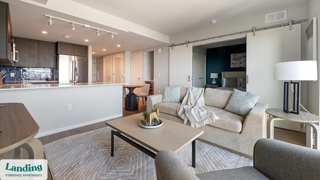 Landing offers flexible lease terms from weeks to months. Please always visit our website or contact us for the latest pricing & availability. Stay longer, save more: 6-Month Minimum base rent: starts at $3711/mo 12-Month Minimum base rent: starts at $3343/mo Landing offers flexible leases across a network of over 35,000 fully-furnished apartments throughout 375+ cities so you can rent on your terms, practically anywhere, and avoid the hassle of paying deposits or application fees. Visit to learn about all the benefits of a Landing membership, see our competitive up-to-date pricing, explore available apartments, take virtual tours, and make reservations online without jumping through traditional rental hoops. Landing's apartments at Cortland Rosslyn are designed for comfortable, easy living, with the ability to stay as long as you like. Experience living with Landing Every apartment is outfitted with all the modern essentials including: custom-designed furnishings, a fully-equipped kitchen with deluxe stainless steel appliances, a gourmet coffee maker, premium linens, Smart TVs, and incredibly fast, reliable internet for working from home. When you live with Landing, you'll enjoy a hassle-free experience with the added benefit of 24/7 access to our dedicated member experience team. Some of the nitty-gritty: a background check and proof of income are required; we're completely smoke-free; bundled utility packages and pricing vary based on length of stay; pet-friendly options available; listed price reflects a 12-month minimum stay.