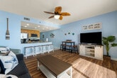 Feel at home in this beachfront 1-bedroom condo on the 8th floor of Splash, offering breathtaking views. As you enter, you will know you are officially on vacation. This condo features a fully equipped kitchen, a private balcony, a private washer/dryer, and complimentary Wi-Fi. Enjoy access to deluxe amenities including a dive-in movie theater, poolside BBQs, water slides, a lazy river, a splash pad, heated swimming pools, and hot tubs. Enjoy the convenience of included storage filled with beach toys and a pack 'n-play. Upon arrival, register at the front desk to receive your parking pass and wristbands for a registration fee of $35 per vehicle, subject to change without prior notice. If you have a trailer, it is an additional $35, located in the lobby at the sky bridge. One of the best resorts for the entire family, this condo allows you to split your day between sandy beaches and swimming pools. You'll never want your vacation to end! Check-in is at 4 PM CT (5 PM Spring Break and Major Holidays). Quiet hours are observed between 10 PM and 8 AM. [SI]