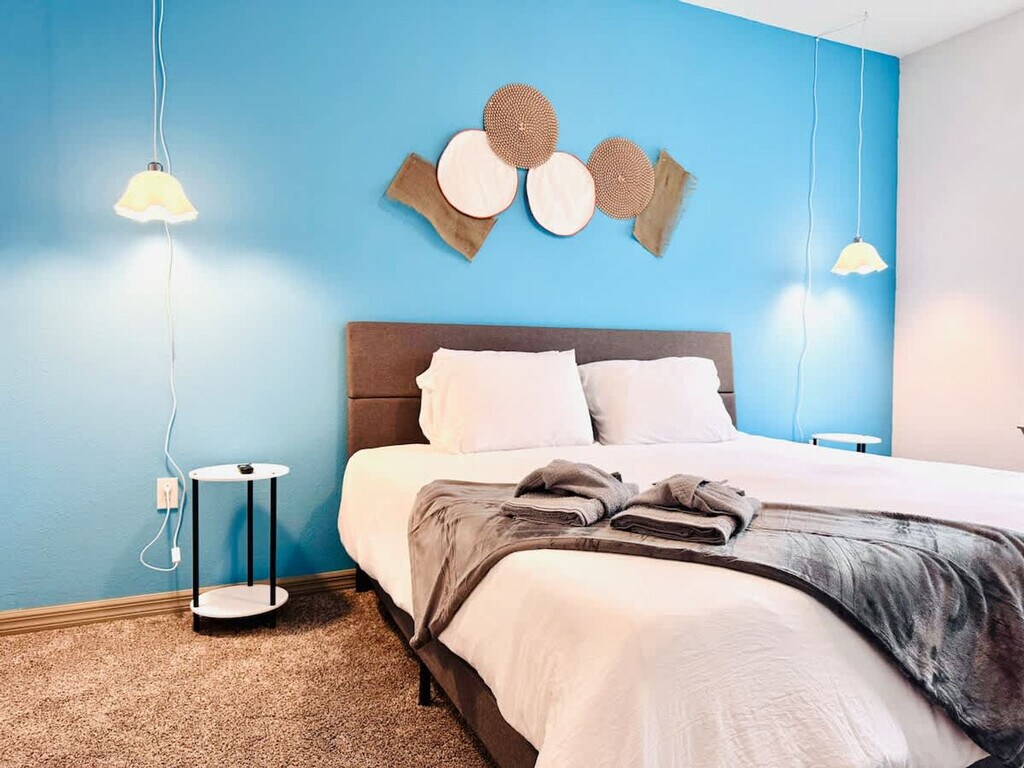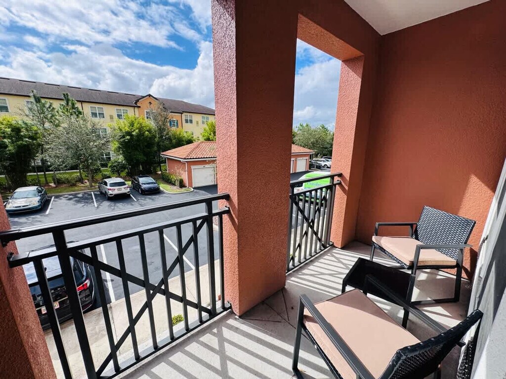 Feel at home in this cozy 1-bedroom, 1-bathroom Kissimmee apartment. This modern and charming apartment offers a prime location just minutes from Disney and other Central Florida attractions. The stylish living room features a cozy sofa and a 50” flat-screen TV. The sofa bed (72” long x 45” wide when open) can sleep 2 additional guests. The fully equipped kitchen features energy-efficient stainless steel appliances, granite countertops, and full kitchenware, including a refrigerator, stove, microwave, coffee maker, blender, toaster, cookware, and utensils. The spacious bedroom retreat includes a 43” flat-screen TV and a walk-in closet. The full bathroom has a bathtub with shower combination and provided amenities: toilet paper, shampoo, conditioner, shower gel, hand soap, towels, and hairdryer. Enjoy Florida’s weather on the private outdoor balcony with seating for two. Pets are welcome. This apartment offers the perfect vacation retreat with resort-style amenities and is minutes from Disney and other top attractions in Central Florida. Relax by the pool, work out in the gym, or stroll along the lake. Quiet hours are between 10:00 PM and 8:00 AM. [SI]
