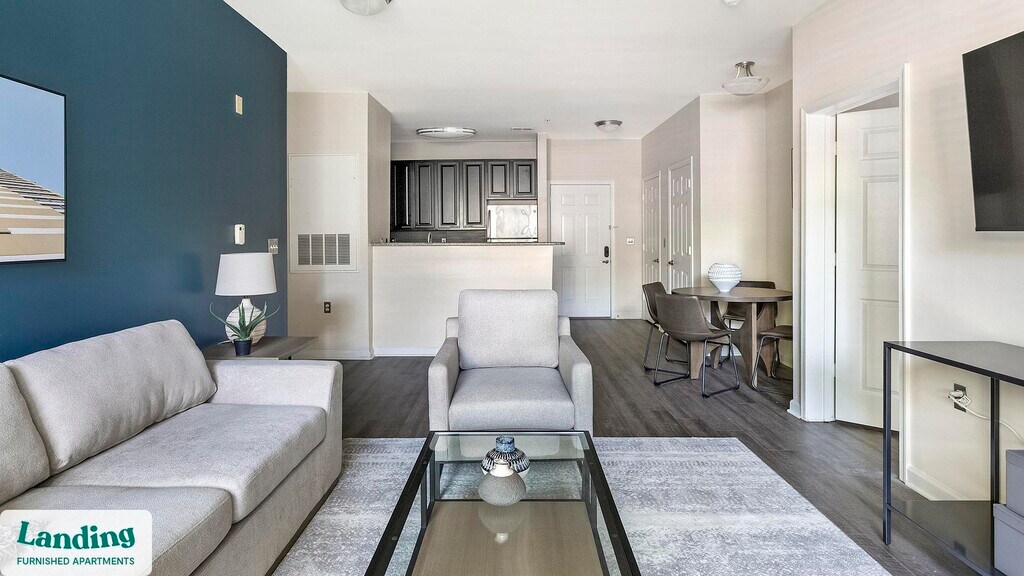 Landing offers flexible lease terms from weeks to months. Please always visit our website or contact us for the latest pricing & availability. Stay longer, save more: 6-Month Minimum base rent: starts at $2924/mo 12-Month Minimum base rent: starts at $2924/mo Landing offers flexible leases across a network of over 35,000 fully-furnished apartments throughout 375+ cities so you can rent on your terms, practically anywhere, and avoid the hassle of paying deposits or application fees. Visit to learn about all the benefits of a Landing membership, see our competitive up-to-date pricing, explore available apartments, take virtual tours, and make reservations online without jumping through traditional rental hoops. Landing's apartments at Riverview Landing at Valley Forge are designed for comfortable, easy living, with the ability to stay as long as you like. Experience living with Landing Every apartment is outfitted with all the modern essentials including: custom-designed furnishings, a fully-equipped kitchen with deluxe stainless steel appliances, a gourmet coffee maker, premium linens, Smart TVs, and incredibly fast, reliable internet for working from home. When you live with Landing, you'll enjoy a hassle-free experience with the added benefit of 24/7 access to our dedicated member experience team. Some of the nitty-gritty: a background check and proof of income are required; we're completely smoke-free; bundled utility packages and pricing vary based on length of stay; pet-friendly options available; listed price reflects a 12-month minimum stay.