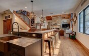 Retreat to this spacious 7-bedroom, 5-bathroom chalet and feel at home in the laid-back charm of the picturesque surroundings. This relaxing retreat, with its alluring indoors and luxury hot tub, allows you to immerse yourself in the beauty of New England. The cabin features rustic furnishings, wooden finishes, and tasteful decor. The modern open-concept living space includes two living rooms, a fully equipped chef's kitchen, and a large dining area. Enjoy the sunroom, deck, and yard to take in the beauty and serenity of the scenic natural surroundings while soaking in the luxurious hot tub or sitting around the magical fire pit. The first living room offers a snug leather sofa with a plush blanket, a smart TV, a grand stone fireplace with firewood provided, a comfy sofa, rocking chairs, and a large coffee table. The second cozy family space includes two cozy sofas with pillows, a smart TV and HQ soundbar, shuffleboard tables, and a wooden coffee table. The fully equipped kitchen boasts top-tier appliances, custom wood cabinetry, countertops with a central kitchen island, a microwave, stove, oven, toaster, coffee maker, hot water kettle, refrigerator/freezer, dishwasher, sink with hot and cold water, plates, glasses, silverware, and pots and pans. The dining area includes a dining table with seating for 10 and a huge kitchen island with seating for 10. The sunroom offers an oversized sectional, a smart TV, and a coffee table. Free parking is available at the property. The heated garage can accommodate 2 full-size SUVs, and the driveway can accommodate up to 5 full-size SUVs. Street parking is not allowed due to neighborhood restrictions. This luxurious ski property sits in the heart of the White Mountains in South Peak near Lincoln, NH, just at the base of Loon Mountain and a few steps away from the ski resort. Just minutes away, the charming town of Woodstock awaits. The location offers convenient access to Waterville Valley and Cannon Mountain. Nearby attractions include Loon Mountain Resort (4 min away), Seven Birches Winery (5 min away), Franconia Falls (6 min away), Alpine Adventures (6 min away), Granite State Scenic Railway (7 min away), Clark's Trading Post (8 min away), Whale's Tale Waterpark (10 min away), Flume Gorge (12 min away), Santa's Village (50 min away) and Story Land (54 min away). Smoking inside the home is prohibited, and any evidence of smoking will result in a $2,000 fee for odor removal and furniture cleaning. Parties and events are not allowed. A trusted partner will provide you with a digital guidebook that will be filled with not only information about the property but also local recommendations and promotions!. Registration Number: STR25-00185 [SI]