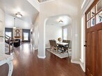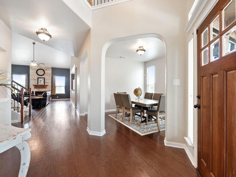 Located in the Montebella community of 78738, this two-story home for lease, with 4 bedrooms and 3.5 bathrooms, offers Hill Country views, spacious living, and close reach of the Hill Country Galleria and outdoor destinations that define this part of Southwest Austin, all in Lake Travis ISD. Inside, the main level begins with a dedicated office near the front of the home, creating a quiet workspace for remote work or study. Rich wood flooring and high ceilings carry throughout the main living areas, where the living room rises two stories and centers around a floor-to-ceiling stone fireplace. Large back windows draw in natural light while framing views of the backyard and the surrounding hill country landscape. The kitchen sits open to the living room and dining areas, creating an easy flow for daily life and entertaining. Wood cabinetry, granite countertops, tile backsplash, and stainless steel appliances provide ample prep space and storage, while the layout keeps the cook connected to the activity in the living room. Upstairs, the second level expands the living space with a large game room and an oversized media room designed for movie nights or watching the game. Three additional guest bedrooms and well-placed bathrooms provide comfortable accommodations. Outdoor living continues on the elevated covered back patio, where wide hill country views stretch beyond the private backyard. A raised garden area adds space for planting vegetables, herbs, or seasonal flowers while still leaving room to enjoy the yard. Montebella places residents within the highly regarded Lake Travis ISD and just a short drive to the Hill Country Galleria s shopping, dining, and entertainment. Nearby destinations like Dripping Springs, Hamilton Pool, and the scenic roads of the Hill Country add weekend adventure. Highway 71 provides a direct route toward Downtown Austin and the Austin airport.