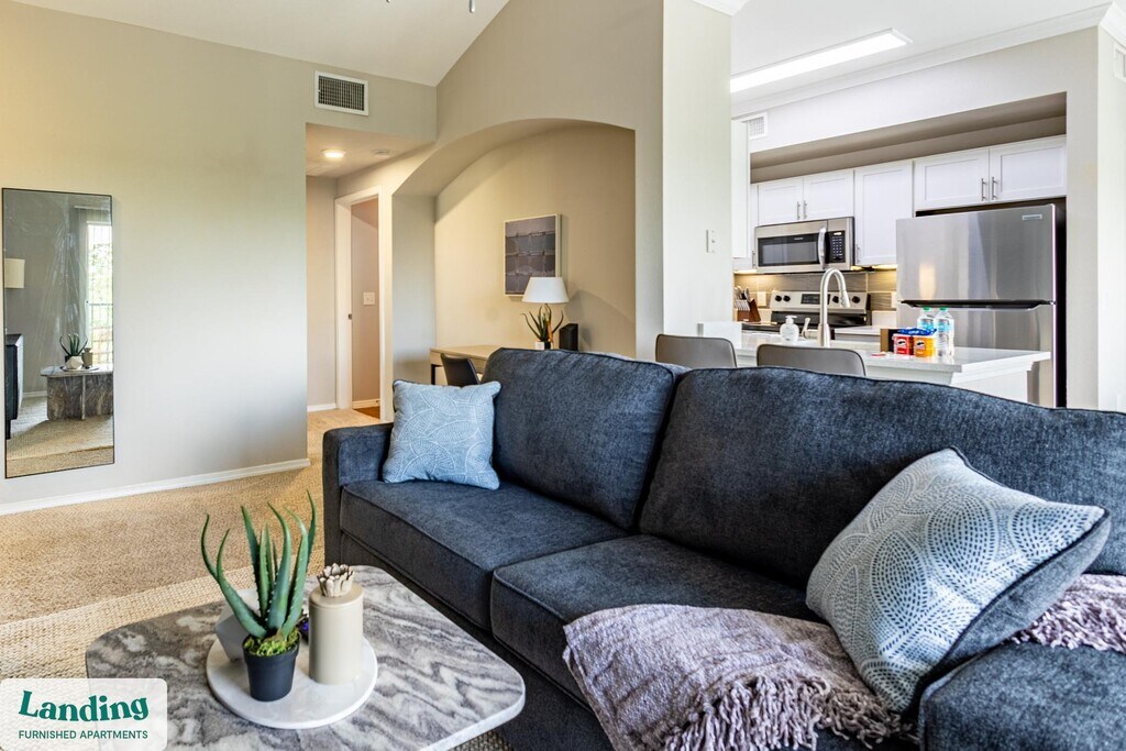 Landing offers flexible lease terms from weeks to months. Please always visit our website or contact us for the latest pricing & availability. Stay longer, save more: 6-Month Minimum base rent: starts at $2605/mo 12-Month Minimum base rent: starts at $2357/mo Landing offers flexible leases across a network of over 35,000 fully-furnished apartments throughout 375+ cities so you can rent on your terms, practically anywhere, and avoid the hassle of paying deposits or application fees. Visit to learn about all the benefits of a Landing membership, see our competitive up-to-date pricing, explore available apartments, take virtual tours, and make reservations online without jumping through traditional rental hoops. Landing's apartments at Watersedge are designed for comfortable, easy living, with the ability to stay as long as you like. Experience living with Landing Every apartment is outfitted with all the modern essentials including: custom-designed furnishings, a fully-equipped kitchen with deluxe stainless steel appliances, a gourmet coffee maker, premium linens, Smart TVs, and incredibly fast, reliable internet for working from home. When you live with Landing, you'll enjoy a hassle-free experience with the added benefit of 24/7 access to our dedicated member experience team. Some of the nitty-gritty: a background check and proof of income are required; we're completely smoke-free; bundled utility packages and pricing vary based on length of stay; pet-friendly options available; listed price reflects a 12-month minimum stay.