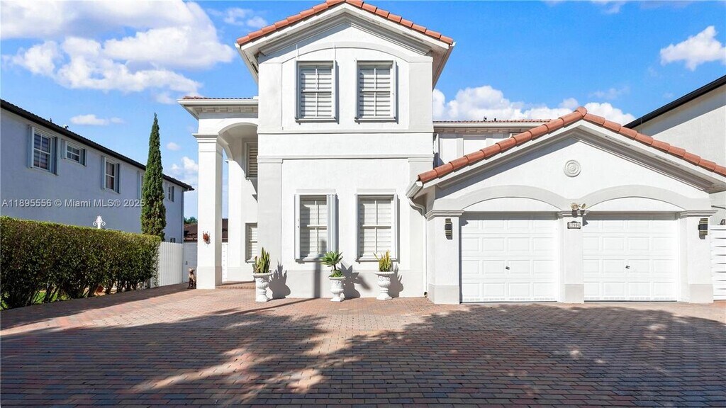 Spacious two-story single-family home with over 3,000 sq ft of living area in desired Century Gardens in the heart of Miami Lakes, NO HOA approval required, this property is ready for move in. Freshly painted all white, Features a full bedroom and bath downstairs, huge kitchen with island and stainless-steel appliances, built-in closets, and zebra blinds. Enjoy a large driveway, two-car garage with A/C, and a fenced backyard with pergola and storage shed. Prime location close to schools, shopping, and highways. Don't miss this opportunity! Contact us :