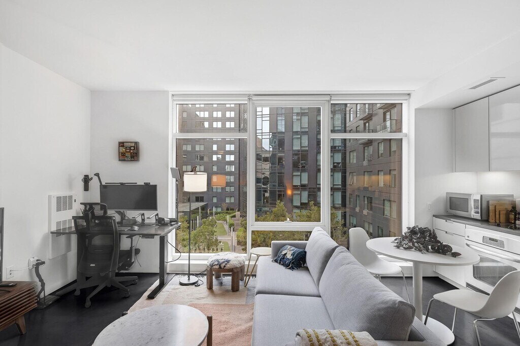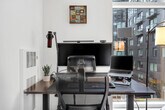Steps from upscale restaurants, museums, and high-energy nightlife, get set to live, play, and work from home with everything at your fingertips, including access to indoor and outdoor terraces and lounges, outdoor pool, fitness center, business center, and more. This fully furnished studio apartment in the heart of SoMa is custom-designed for the remote worker looking for a comfortable and inspiring environment in which to be productive. The unit includes a fully equipped kitchen, full bathroom, Nespresso coffee machine, in-unit laundry, smart TV, and all utilities. There is no air conditioning in this unit. Internet speeds are not guaranteed and may fluctuate based on your computer model and the router location. Early check-in from 10am-3pm will incur a fee of $75 and before 10am will incur a fee of 1 full night's rent based on selected dates. Late check-out from 11am-3pm will incur a fee of $75 and after 3pm will incur a fee of 1 full night's rent based on selected dates. Late check-outs must be requested at least 48 hours in advance. Includes private high-speed internet, standing desk (Autonomous), work chair (Autonomous), 34-inch ultra-wide monitor (Samsung), microphone (HyperX), webcam (Logitech), computer speakers (Logitech), key light, monitor light, green screen, keyboard (Logitech), mouse (Logitech), laptop stand, and TOTU 16-in-1 Triple Display USB-C 3.1 Docking Station. A laptop computer is not included. [SI]