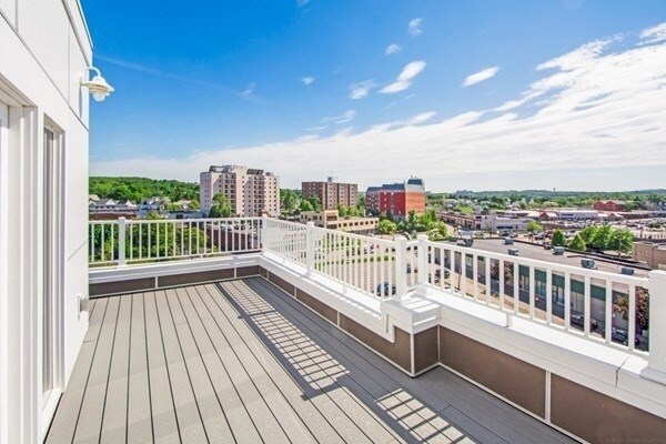 PENTHOUSE UNIT!! The only opportunity to live in a piece of Quincy s new downtown, is presenting this beautiful 2 bed 2 bath Penthouse Unit with huge private roof deck sitting high above the new Quincy Center. Take the elevator from your parking garage space to the top floor, enter your unit through your high style designer kitchen with its European style cabinetry and professional grade appliances. Exquisitely appointed with high ceilings and huge windows, the unit is detailed with contemporary finishes but maintains a warm traditional feel. The stylish Kahrs wood floor grounds the unit in warmth while the wide open windows cast sunshine throughout the large open floor-plan. Modern Contemporary style bathroom with glistening marble floors and tiled shower. Master bath has double vanity and built in cabinetry with tiled shower and separate tub. Large bedroom with floor to ceiling windows letting in so much beautiful sunlight! Washer and dryer in unit.