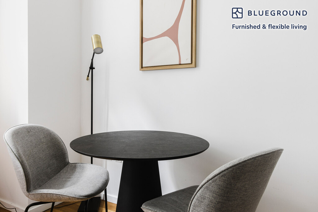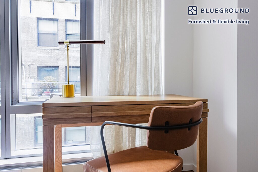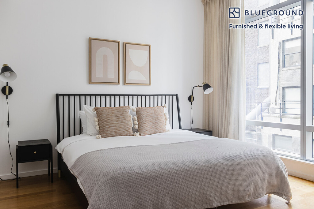 Show up and start living from day one in New York with this comfortable one bedroom Blueground apartment. You’ll love coming home to this thoughtfully furnished, beautifully designed, and fully equipped Diamond District home. (ID #NYC1643) The advertised rate of $4,580/month is the lowest available price, based on a 1 month(s) and 17 day(s) stay with a move-in date of December 20, 2025. If you’re looking for a 1-year stay, the rate is $5,960/month. Rates vary depending on the duration of stay, season, and other parameters. For exact pricing and additional pricing components, please visit our website and enter your desired move-in and move-out dates. The rate is applicable when billed upfront; it can be higher if billed in multiple payments. Brokers are welcome to reach out. Were you looking for an unfurnished lease? Try Blueground instead and upgrade from unfurnished to furnished living: - Furnished at rates comparable to unfurnished - No setup or furniture costs - save thousands - Move-in ready - save time, just bring your suitcase Designed with you in mind Gorgeous furniture, fully equipped kitchen, smart TV, and a premium wireless speaker are just a few of the amenities you’ll find inside this one bedroom apartment. Ideally located in New York, you’ll find a lot to love outside as well. When you’re ready to relax, you’ll be happy to discover every Blueground bedroom comes with superior quality mattresses, luxury linens, and cozy towels. We handle everything so you can simply show up and start living. This apartment also offers in-apartment laundry. Sleeping arrangements Queen Bed, 63in/160cm Amenities Building amenities unique to this one bedroom apartment include an on-site: - Doorman - Dryer - Elevator - Washing machine - Lounge Arrival and ongoing support The entire apartment is yours to enjoy! Throughout your stay, you’ll have access to our Client Experience team through the Blueground App. You can schedule additional cleanings, submit maintenance requests, and view our neighborhood recommendations with just a few taps. We’ll share all details upon confirmation of your stay. Other things to note Building amenities may have an extra cost. This Blueground apartment has flexible lease options, allowing you to book it for one month, a year, or more. Brokes CYOF. We take great pride in ensuring every photo displayed is shot in our own units with our actual furnishings. That said, we regularly refresh our decor and furniture arrangement, which may differ from what’s pictured.